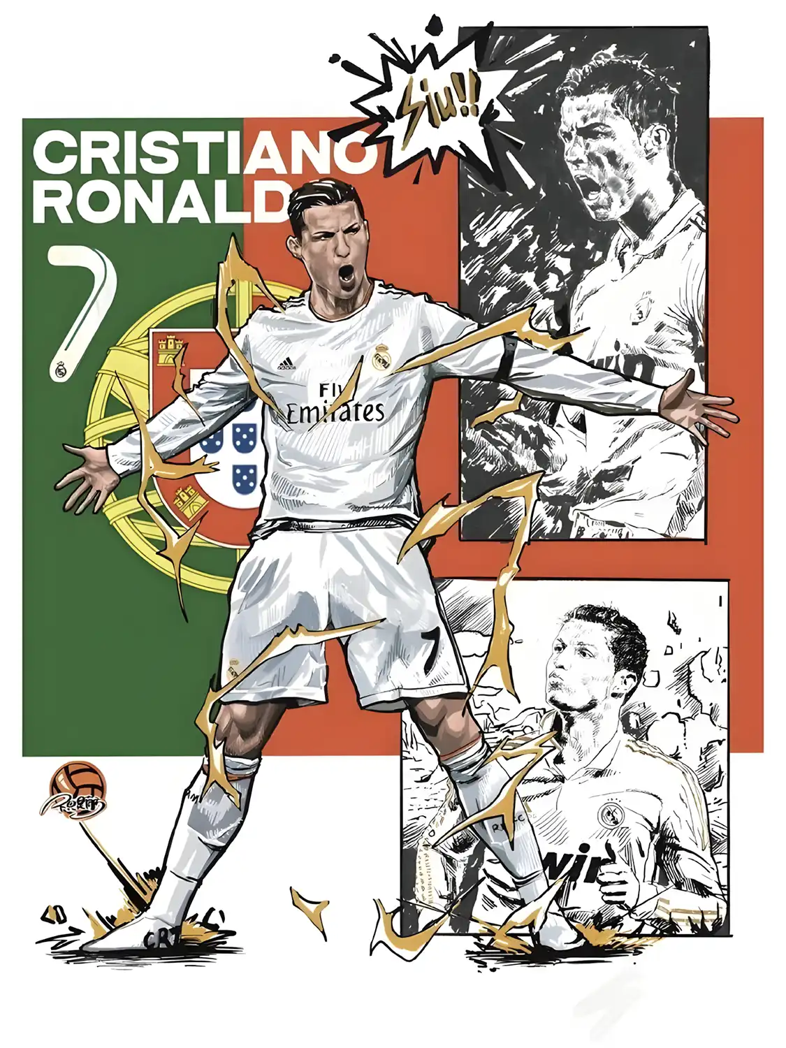 دوران حضور رونالدو در رئال مادرید (۲۰۰۹-۲۰۱۸) بیشک یکی از درخشانترین دورههای فوتبال مدرن بود. او در این باشگاه ۴۵۰ گل در ۴۳۸ بازی به ثمر رساند و رکورددار گلزنی تاریخ این باشگاه افسانهای شد. تصاویر او در لباس سفید کهکشانیها، به ویژه لحظات جشن گل و بالا بردن جام لیگ قهرمانان، از محبوبترین والپیپر رونالدو هستند.