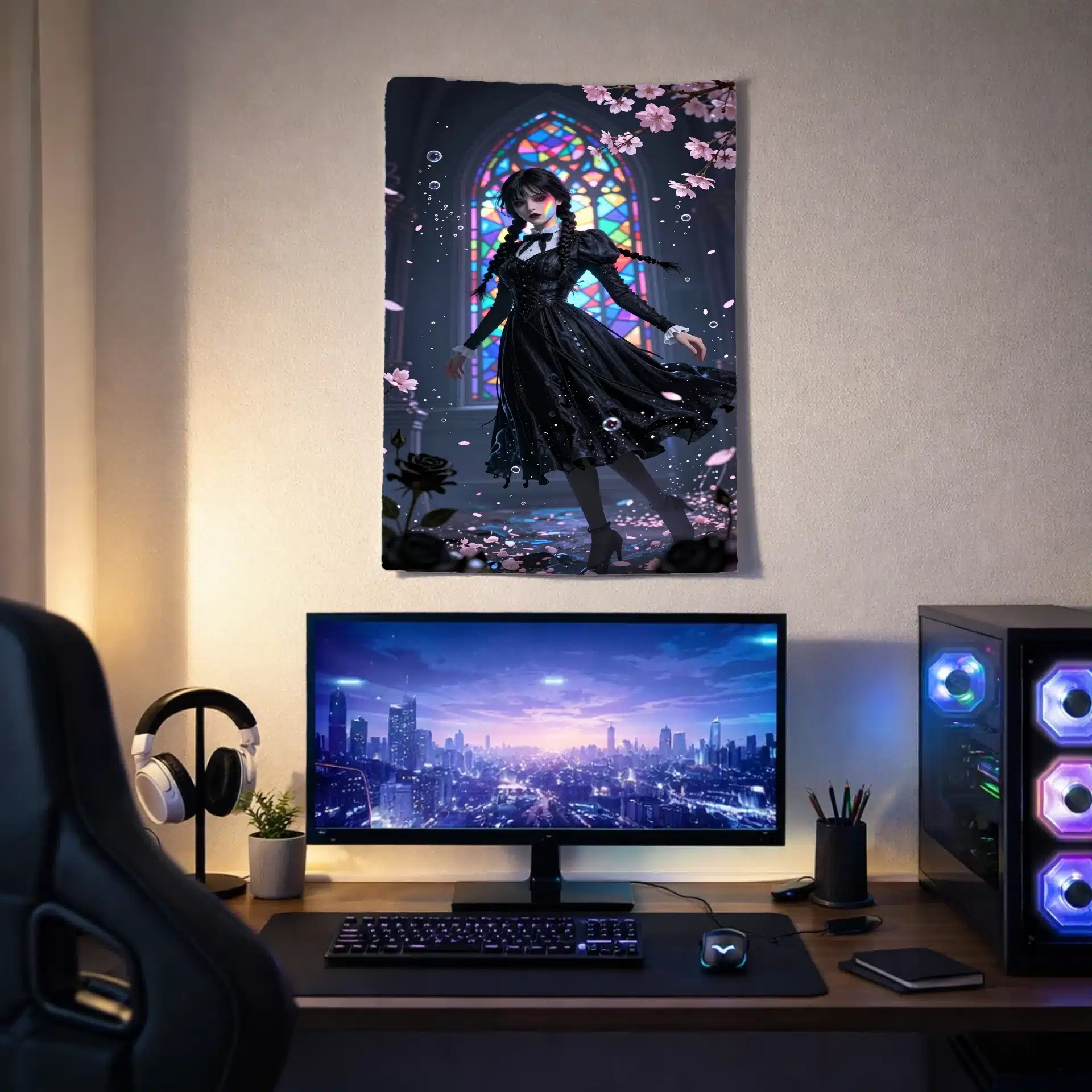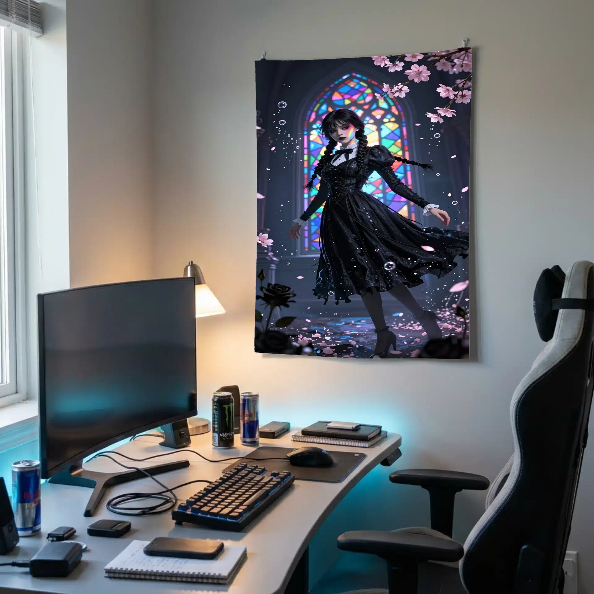 این بکدراپ خیرهکننده از ونزدی آدامز در یک صحنهٔ سورئال زیر آب طراحی شده است. با ترکیب عناصر گوتیک و زیباییهای رویایی، این تصویر حال و هوایی مرموز و جذاب را برای علاقهمندان به سبک تاریک و زیباییشناسی خاص ایجاد میکند.