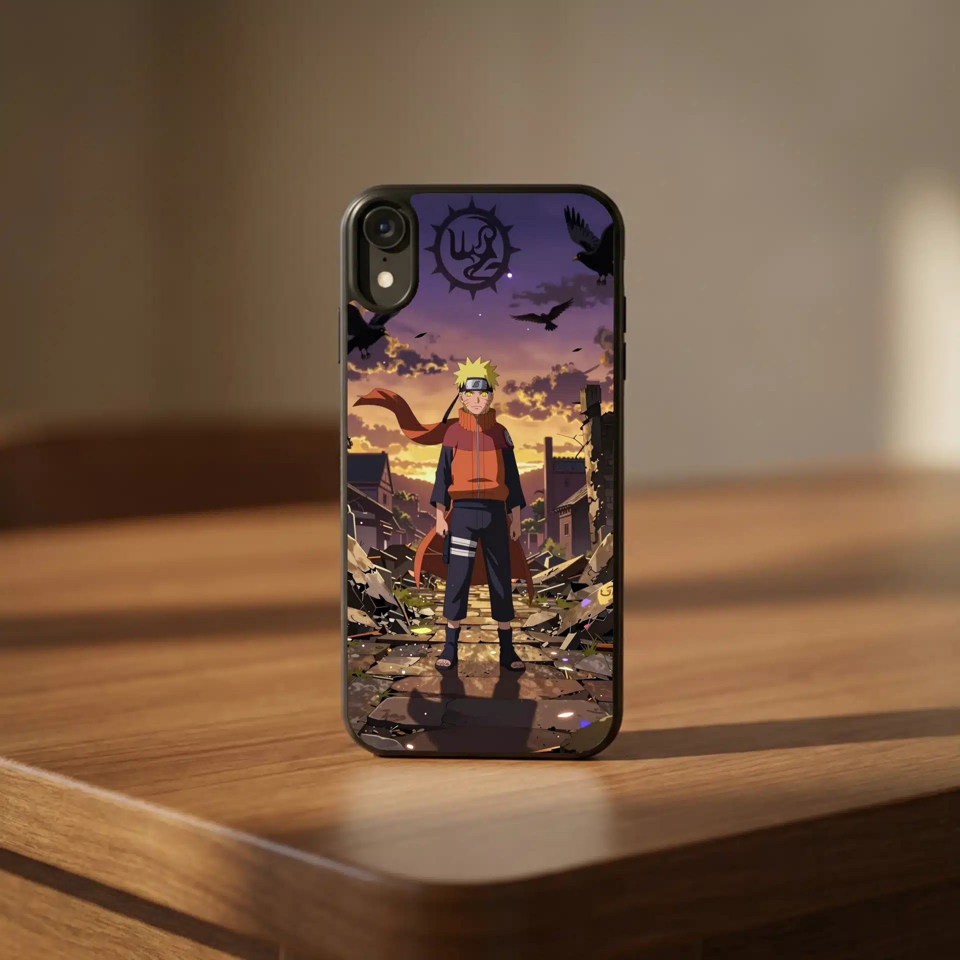 ناروتو تنها در میان ویرانههای دهکده برگ ایستاده است، سایهاش بر روی سنگفرشهای شکسته کشیده شده و دستمال نارنجی پارهای را محکم در دست گرفته است. این صحنه، نمادی از بلوغ و عزم راسخ او به عنوان هوکاگه است، نه خشم بیپروای گذشته.