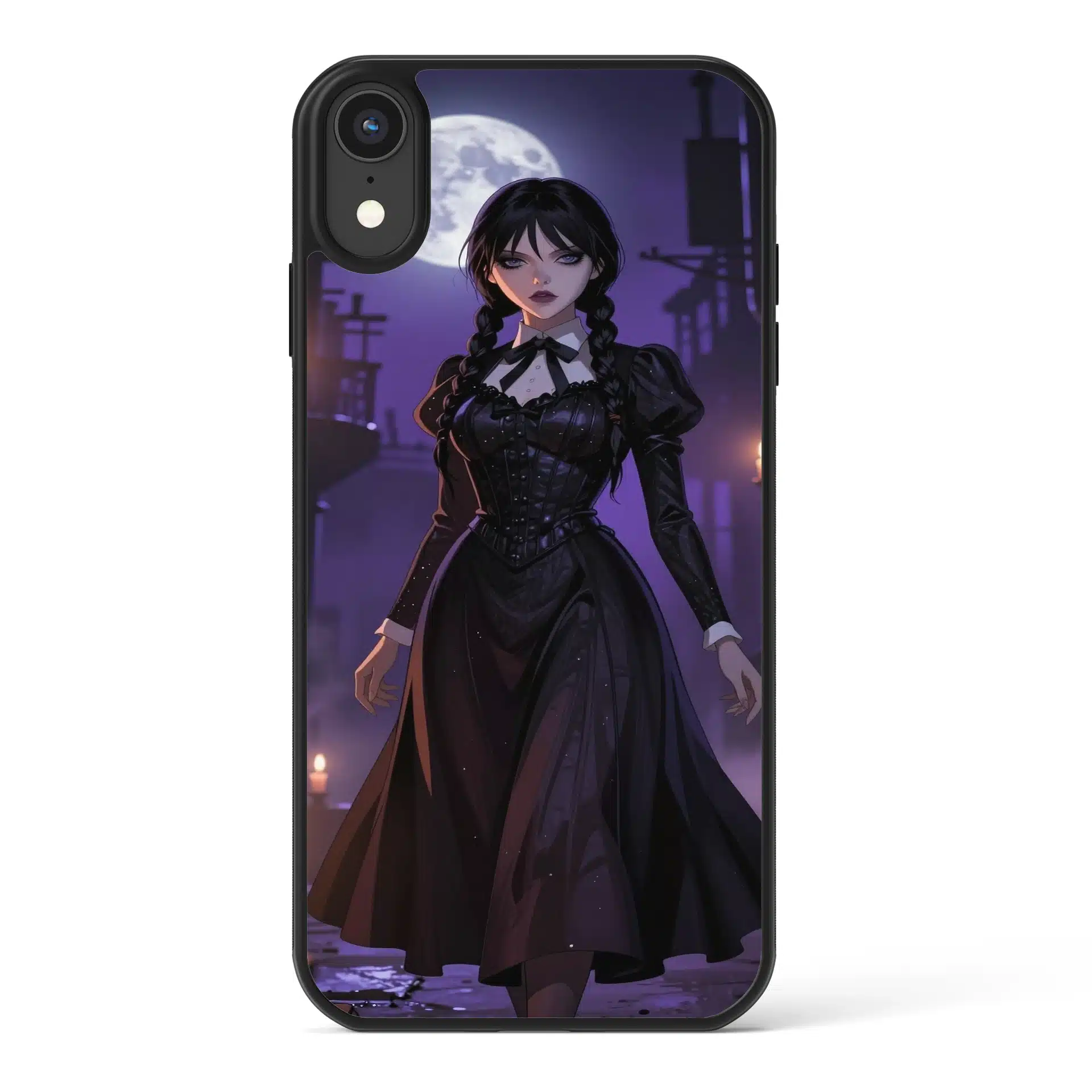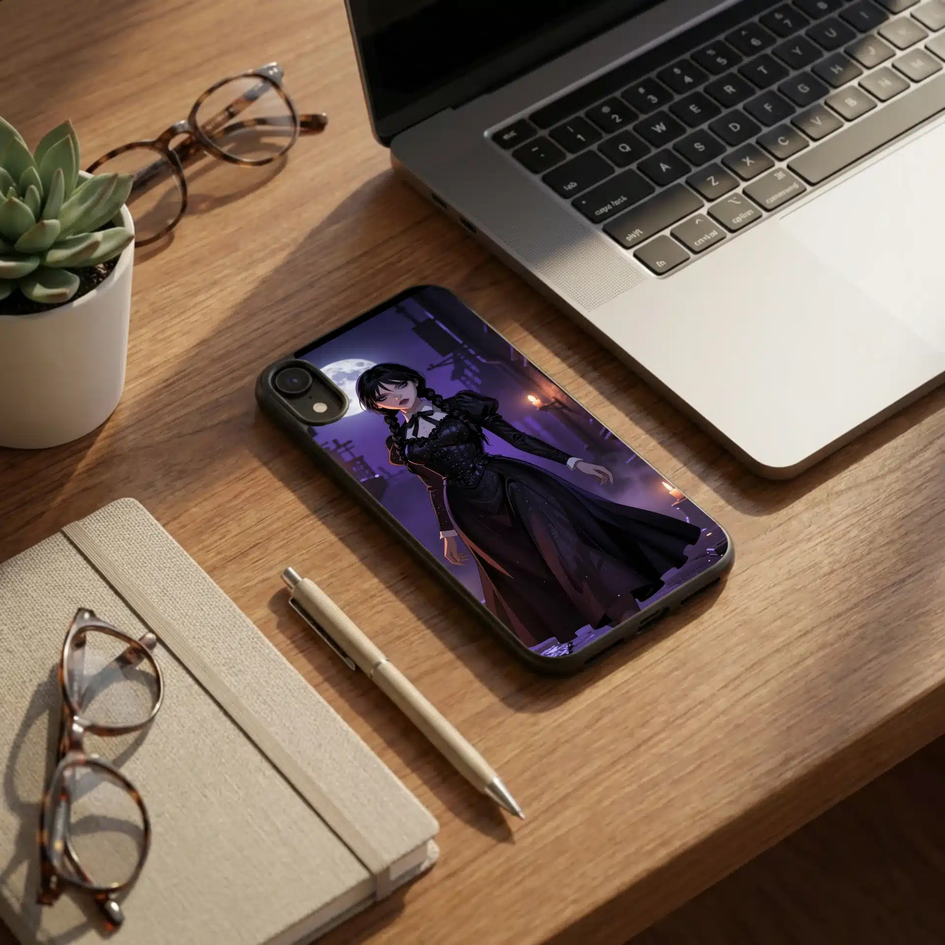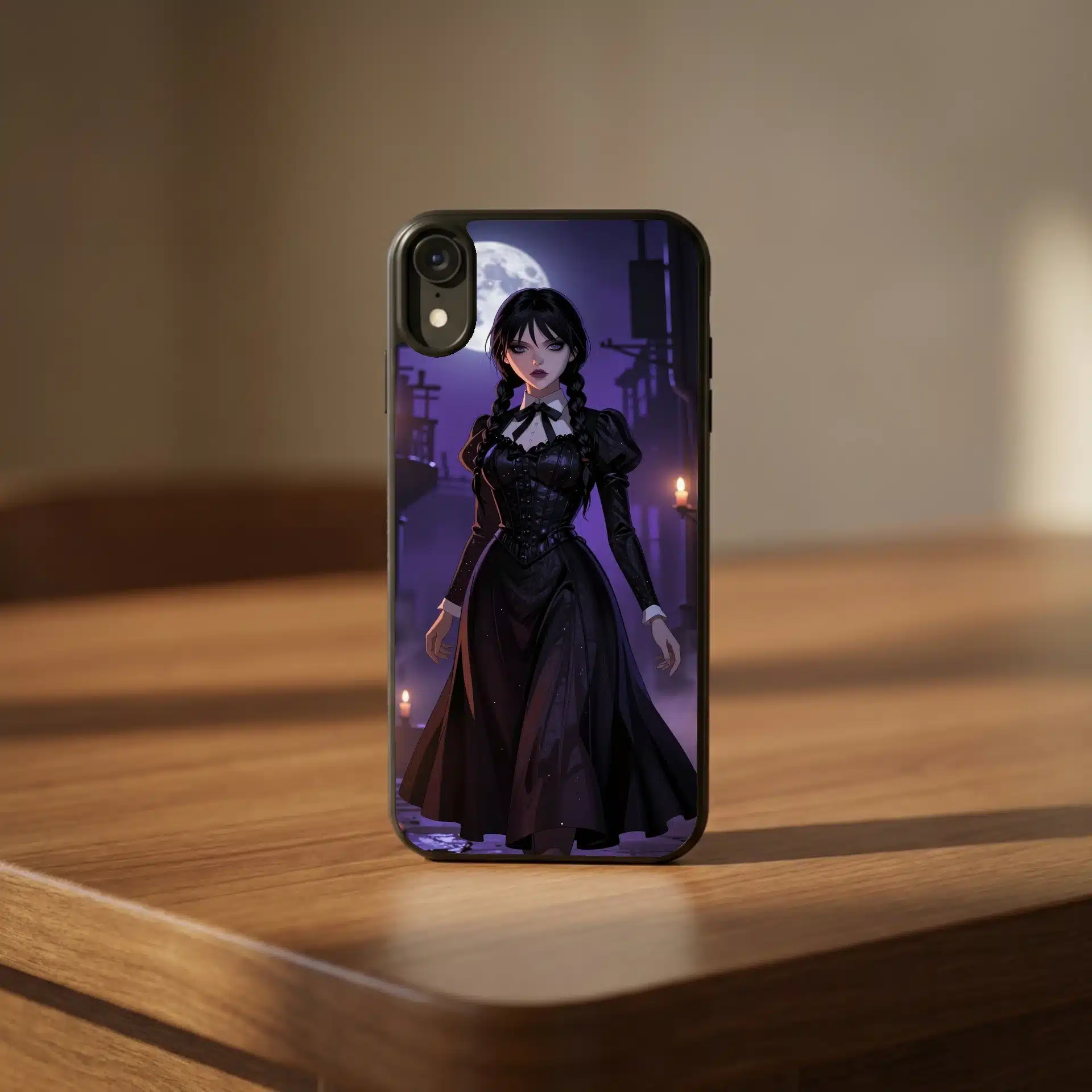 پرترهی انیمهای خیرهکننده از ونزدی آدامز، در حالی که در یک کوچهی شهری تاریک و پر از حس ایستاده است. نور شمعهای نارنجی رنگ، سایههای بنفش عمیق را روشن میکند و حال و هوایی مرموز و جذاب ایجاد میکند.