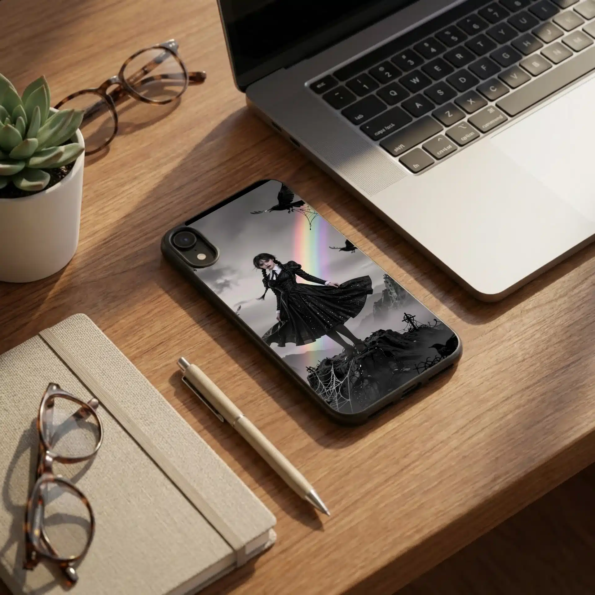 طراحی این تصویر با جزئیات گوتیک مانند تارهای عنکبوت، کلاغهای در حال پرواز و مههای اسرارآمیز، همراه با نورپردازی سینمایی و ترکیب رنگهای خاکی کمرنگ و سایههای پاستلی، اثری خیرهکننده و مناسب برای والپیپرهای ویروسی خلق کرده است.