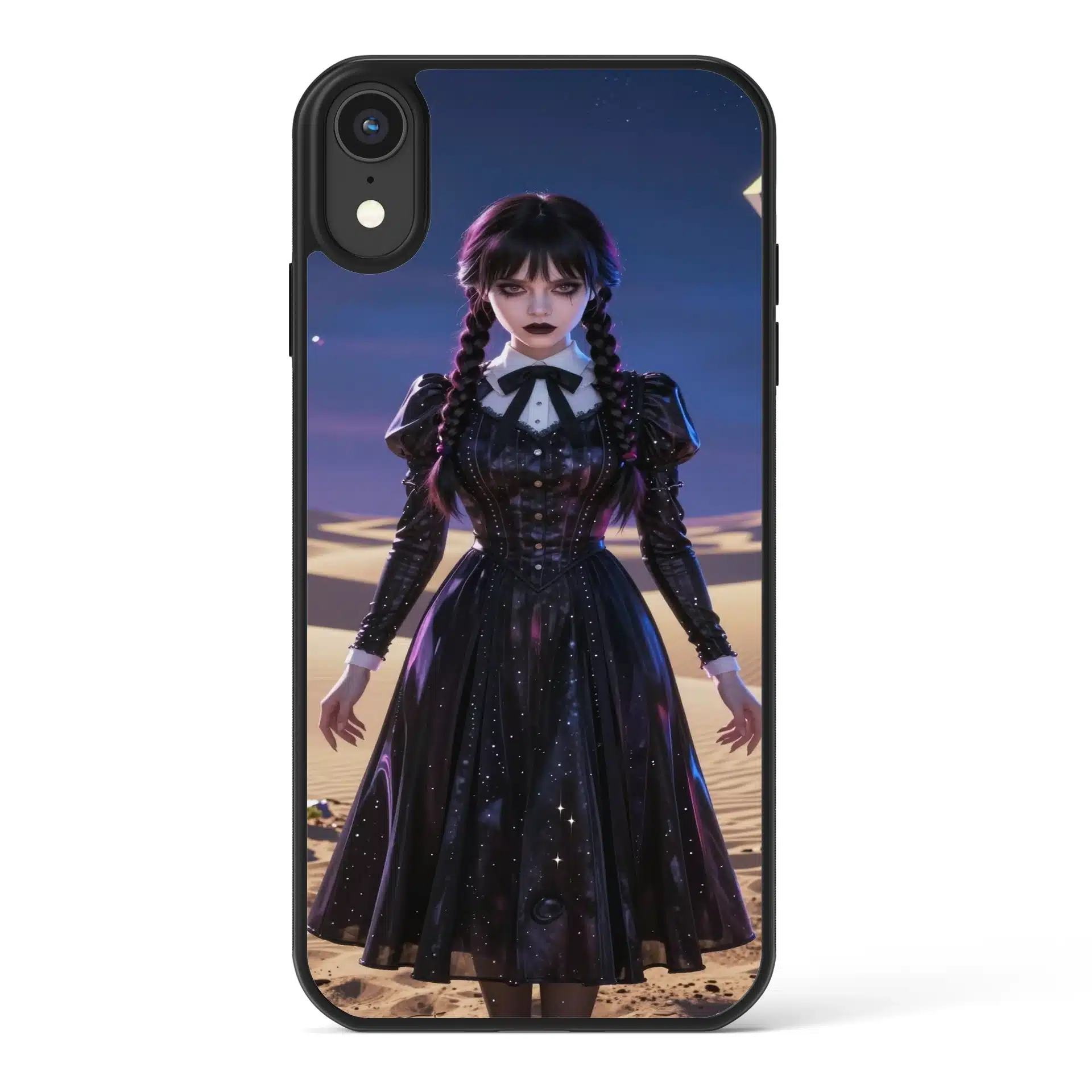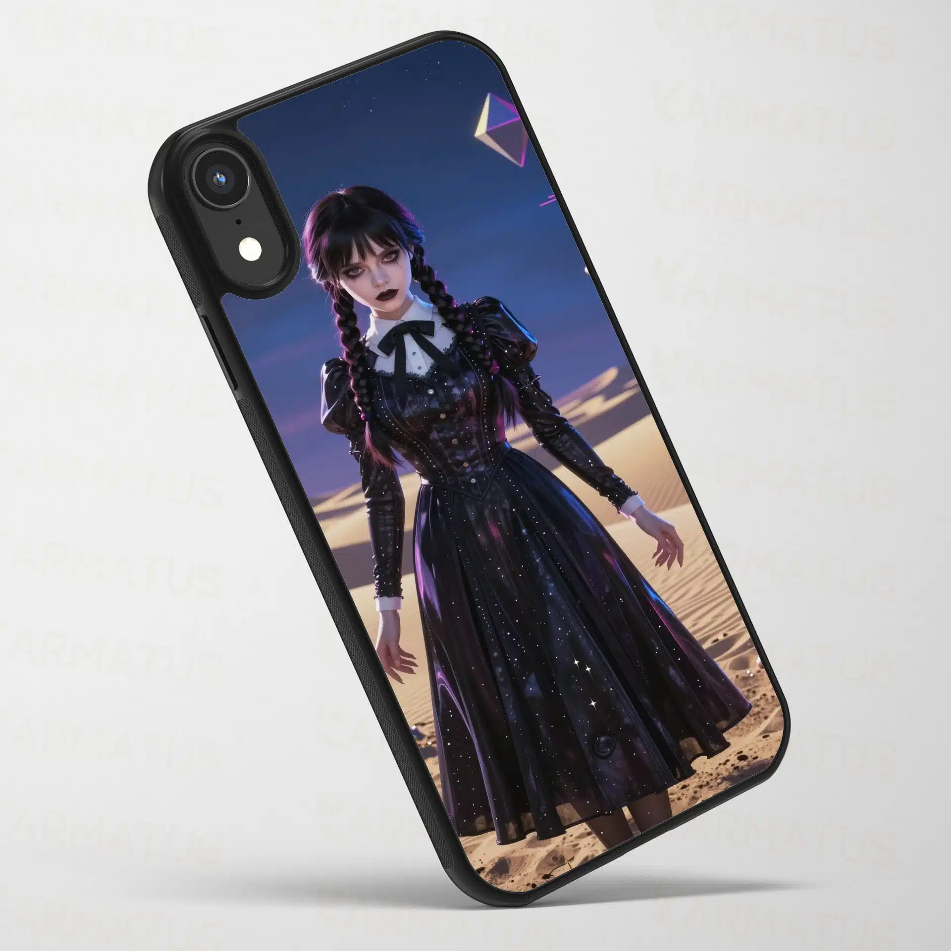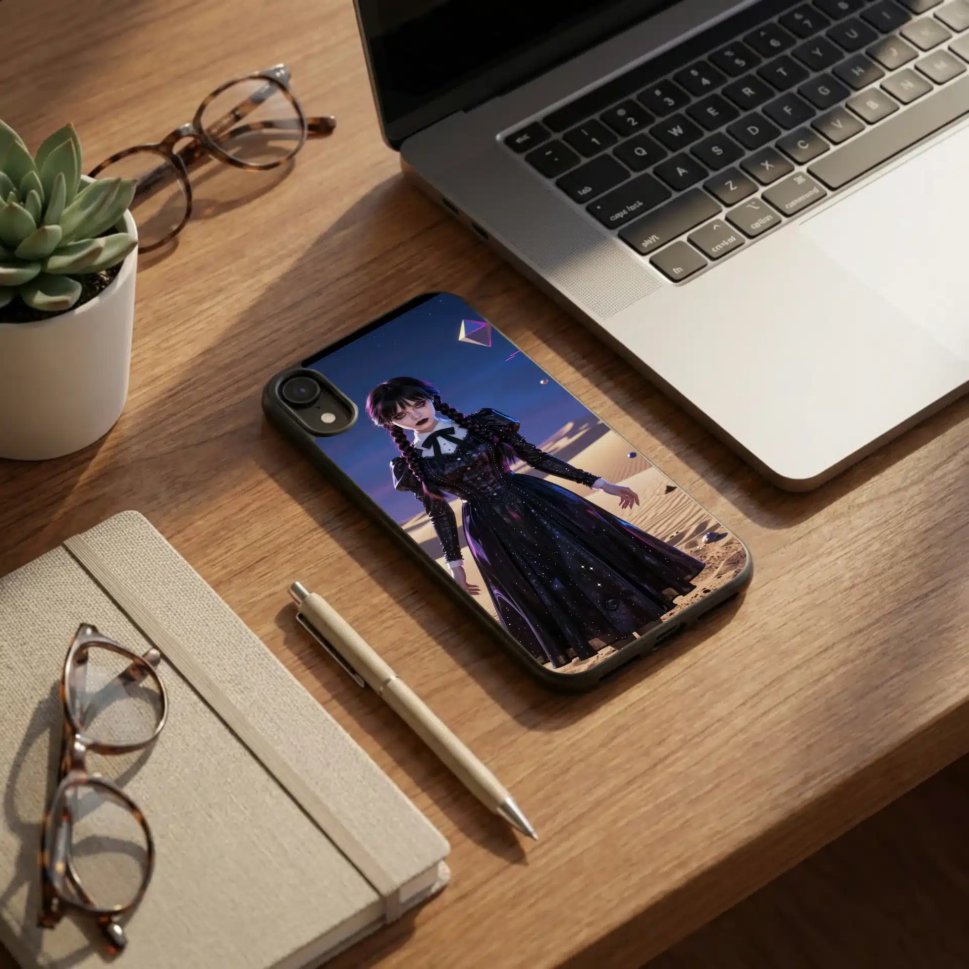 والپیپر انیمهای خیرهکننده از ونزدی آدامز در یک بیابان سورئال، با نورهای نئونی درخشان که لباس سیاه و بافت موهایش را احاطه کردهاند. این اثر با جزئیات فوقالعاده و رندر 8K، ترکیبی از حال و هوای مرموز ونزدی و عناصر مدرن سایبرپانک را به نمایش میگذارد.
