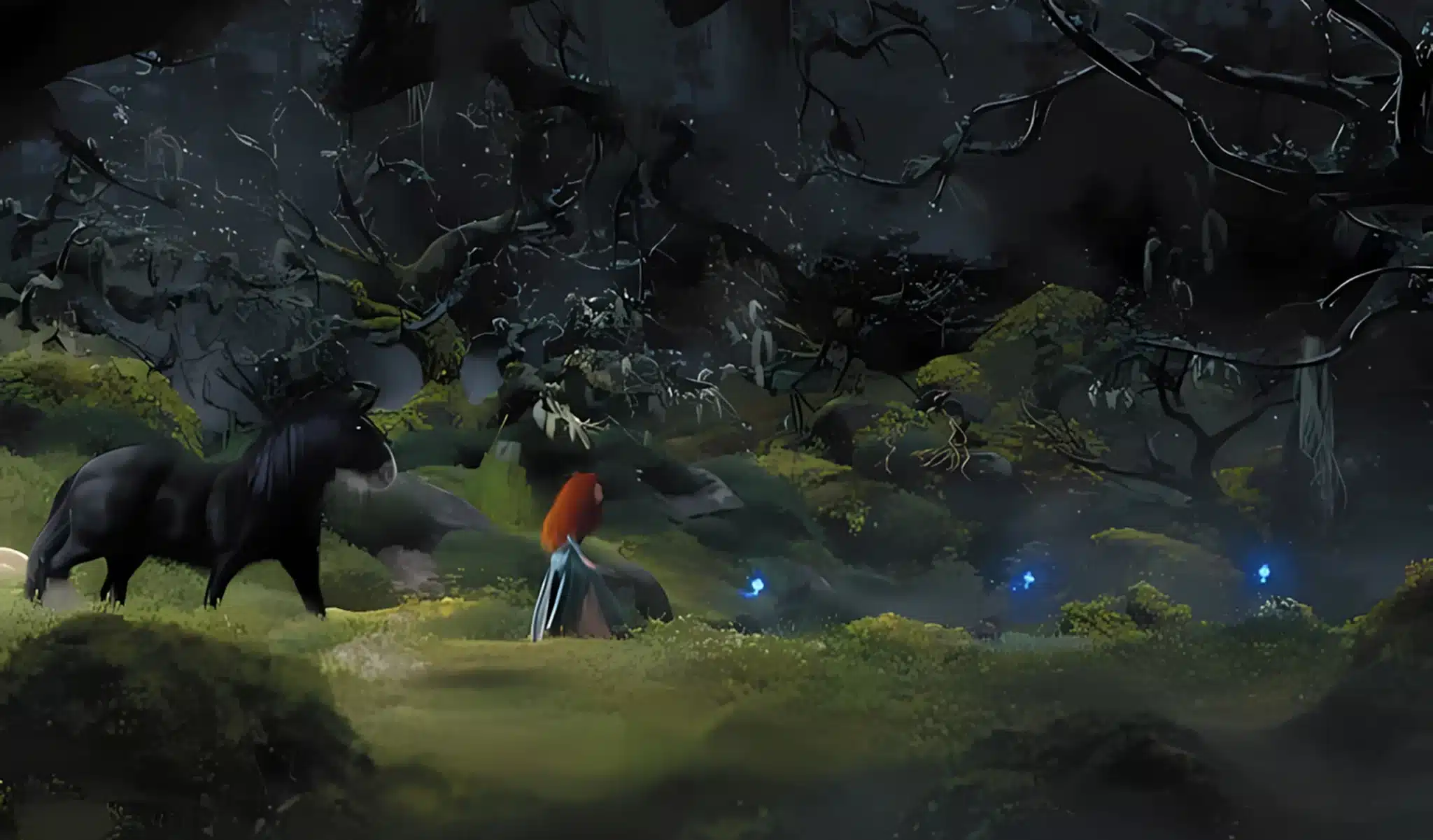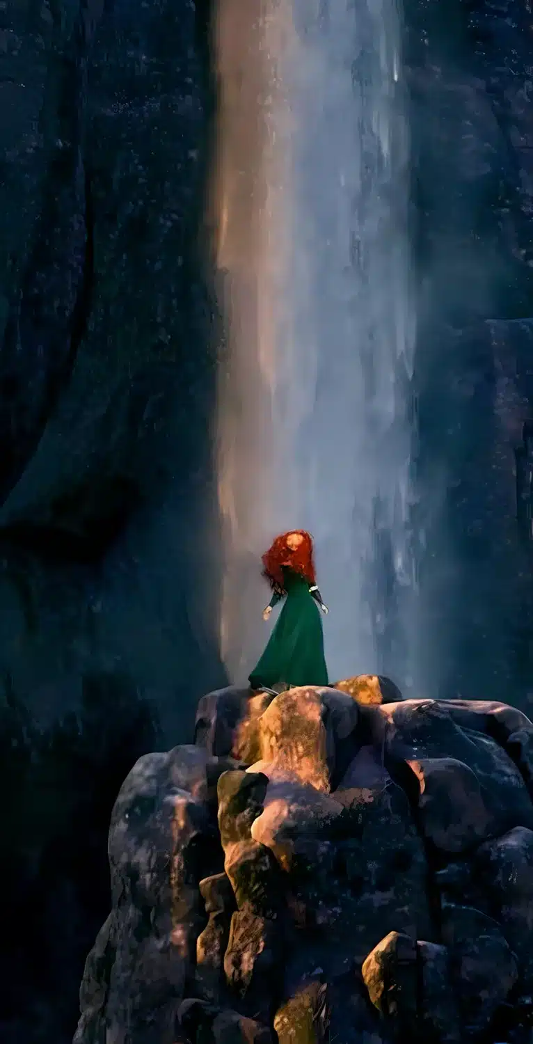 فضای مرموز و زیبای جنگل با آبشار در انیمیشن شجاع