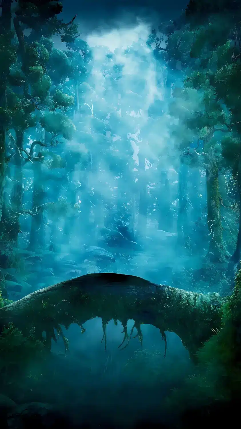 فضای مرموز و زیبای جنگل با نورهای آبی جادویی