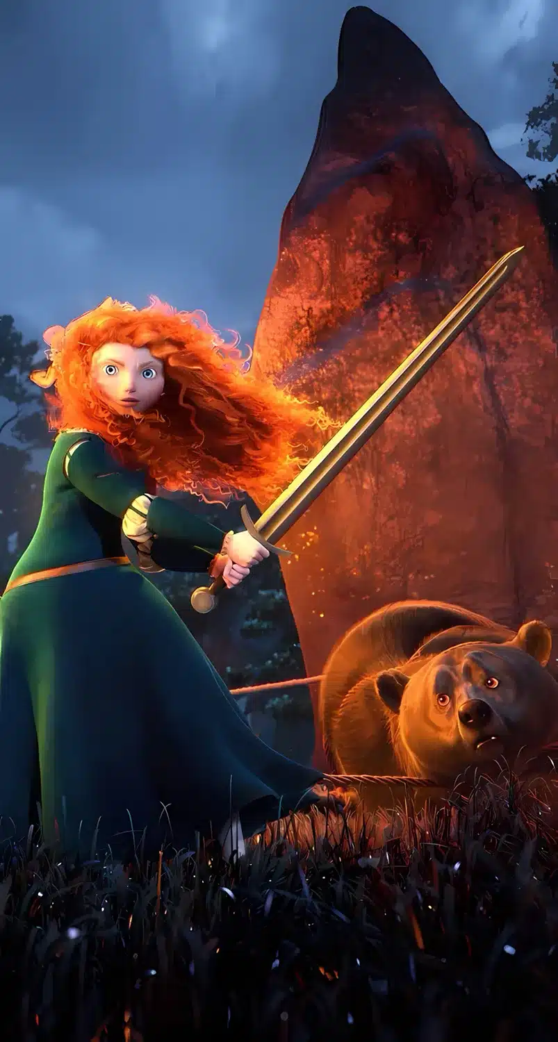 استفاده از والپیپر بریو روی صفحه نمایش، حس آزادی و ماجراجویی را به شما منتقل می‌کند. ترکیب رنگ‌های سبز جنگل با موهای قرمز و آتشین مریدا، تضادی چشم‌نواز ایجاد می‌کند. علاوه بر این، طراحی‌های هنری انیمیشن شجاع بسیار الهام‌بخش هستند.