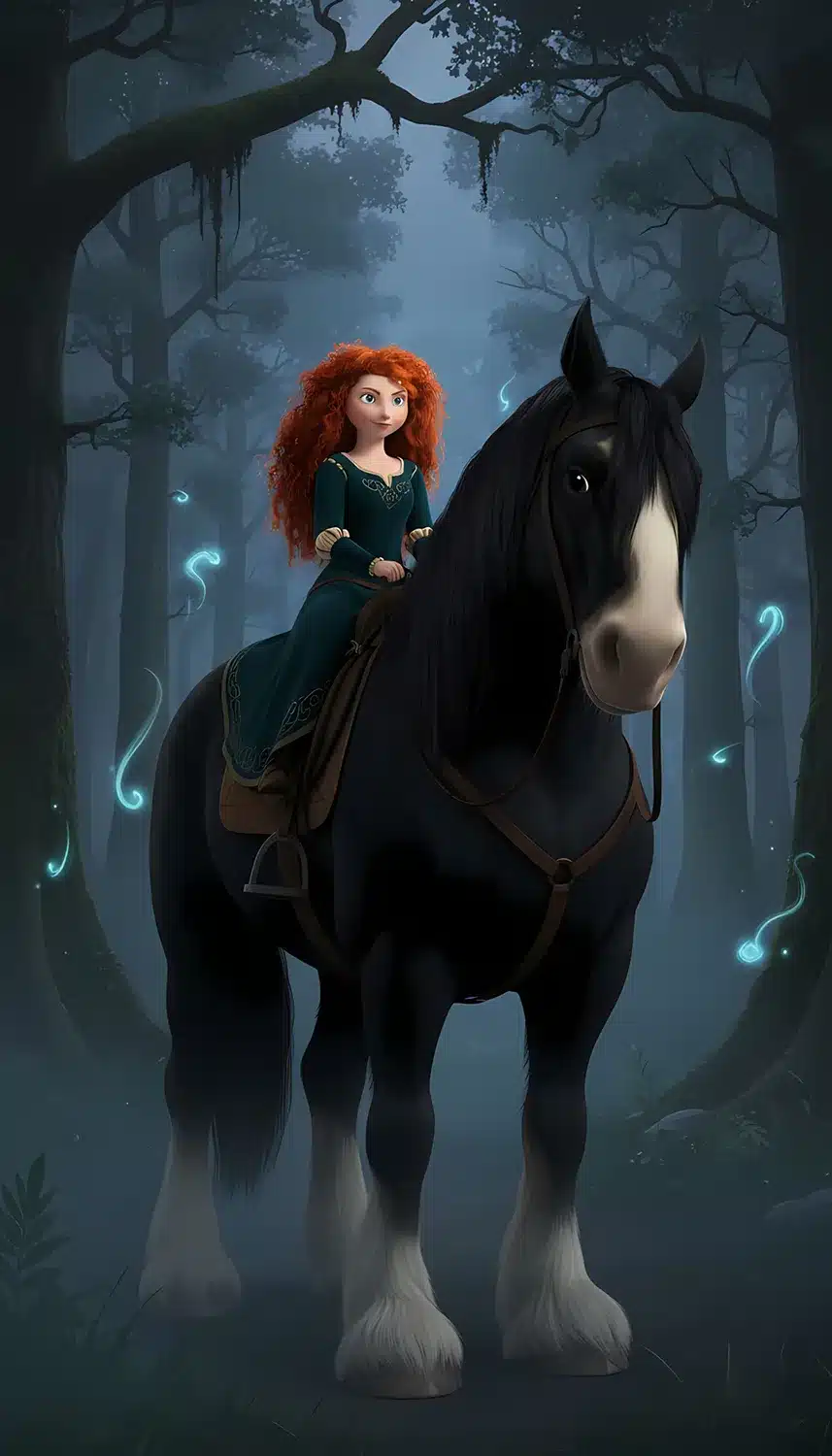 تصویر زمینه مریدا سوار بر اسب سیاه انگوس در انیمیشن بریو