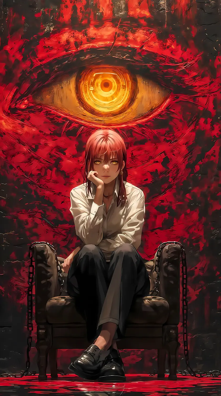 نگاه سرد و مرموز ماکیما در والپیپر مرد اره ای رو روی پس‌زمینه ست کن و حس قدرت رو تجربه کن