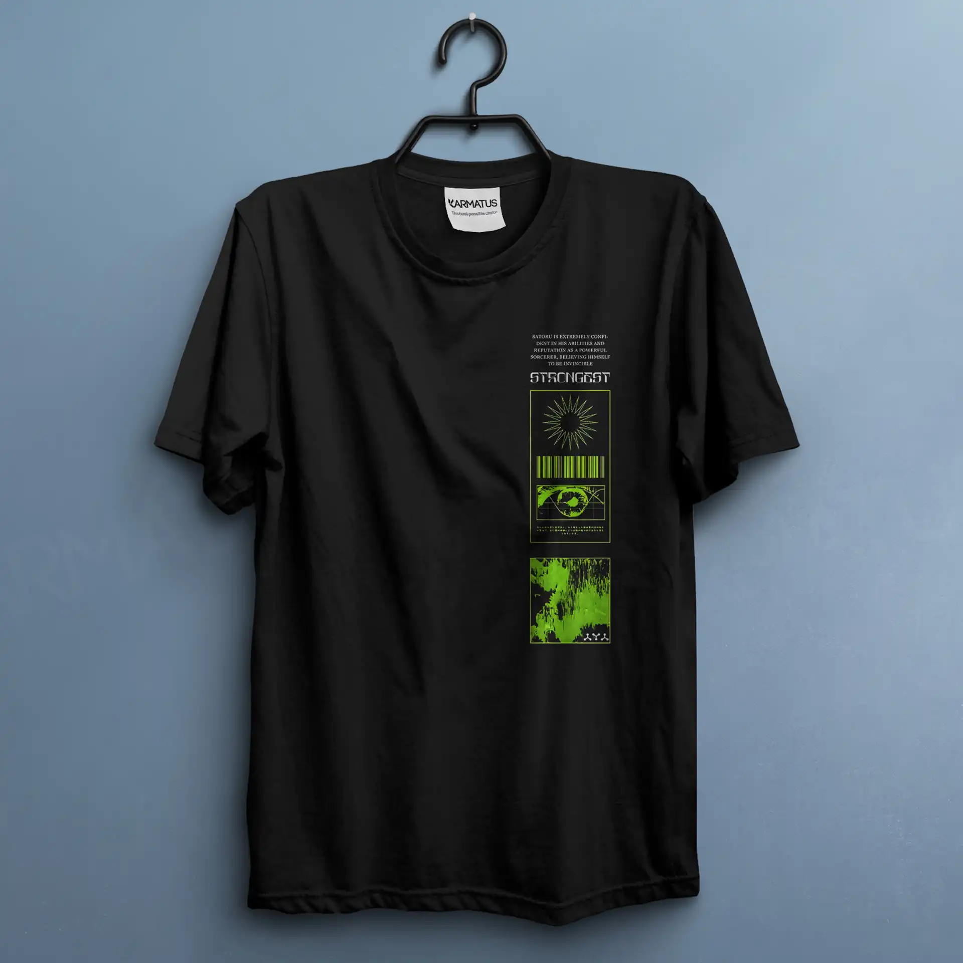 • در کارماتوس، کنتراست رنگ‌ها مهم است؛ طرح شما متناسب با رنگ تیشرت ادیت می‌شود تا بهترین نمایش را داشته باشد.