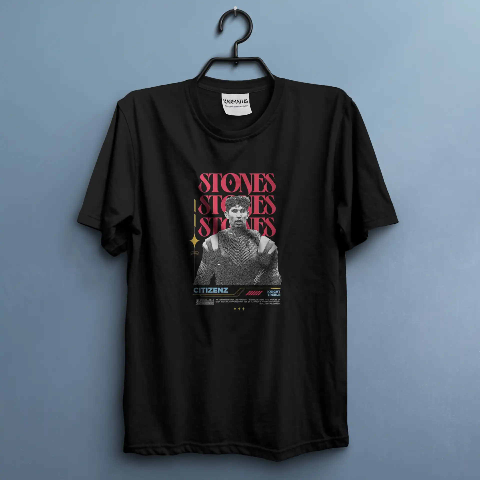 • در کارماتوس، کنتراست رنگ‌ها مهم است؛ طرح شما متناسب با رنگ تیشرت ادیت می‌شود تا بهترین نمایش را داشته باشد.