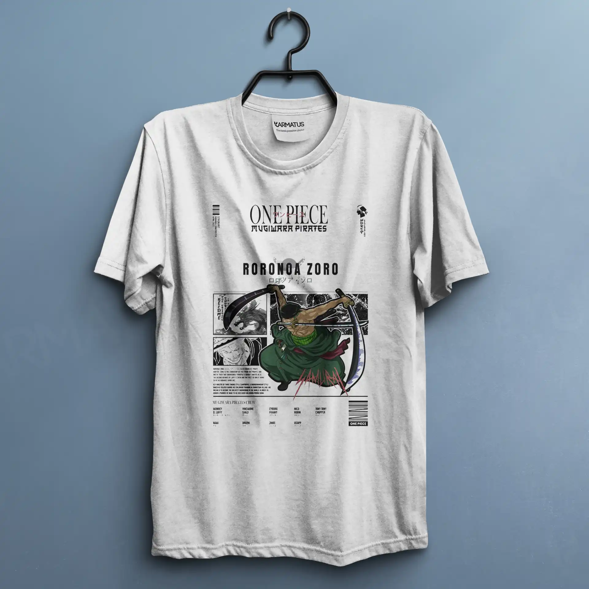 تیشرت‌های چاپی کارماتوس با طراحی‌های متنوع از صحنه‌ها و شخصیت‌های معروف "وان پیس" تولید می‌شوند. کیفیت بالای چاپ و پارچه‌های نرم و راحت، این تیشرت‌ها را به گزینه‌ای عالی برای استفاده‌ی روزمره تبدیل کرده است. برای طرفدارانی که عاشق طرح‌های خاص و جذاب هستند، این تیشرت‌ها می‌توانند یادآور هیجانات و لحظات فراموش‌نشدنی دنیای وان پیس باشند.