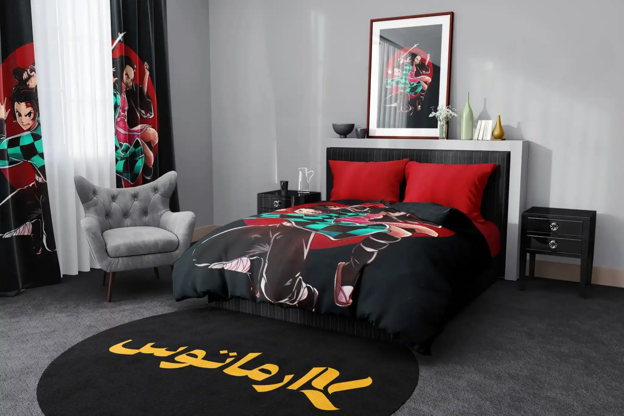 4. روتختی‌های شیطان کش: محصولات چاپی مانند روتختی با طراحی‌های شخصیت‌های "شیطان کش" می‌توانند اتاق خواب شما را به یک دنیای فانتزی تبدیل کنند.