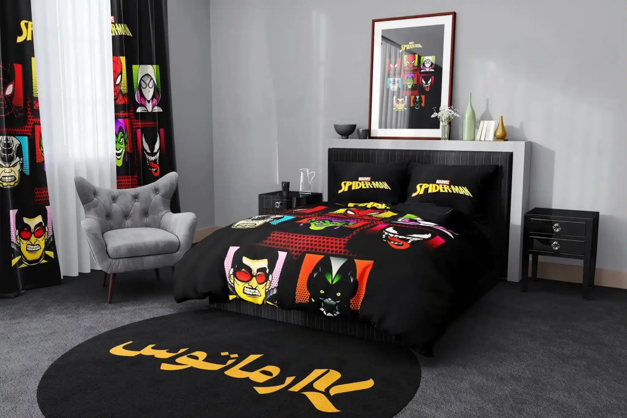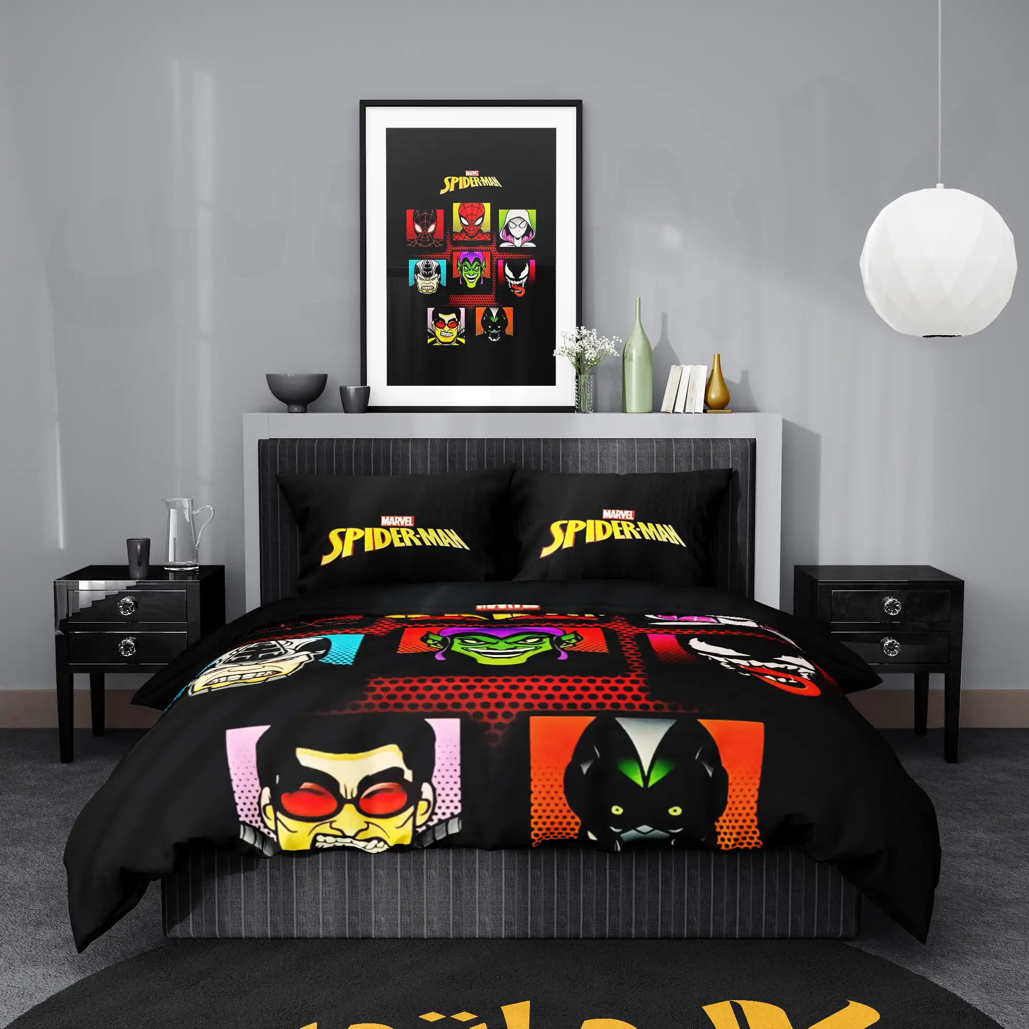 تکه های مورد استفاده در یک سرویس روتختی طرح مرد عنکبوتی Spider Man: