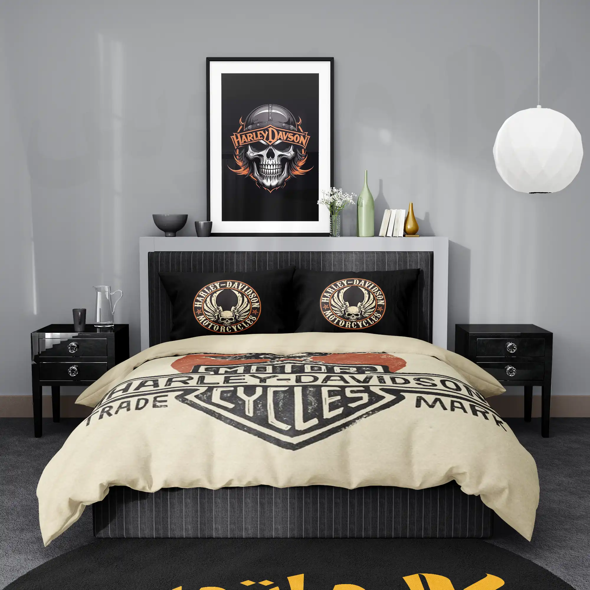 قیمت و خرید انواع روتختی طرح هارلی دیویدسون Harley davidson یک، یک و نیم و دو نفره چاپ مخمل و میکرو به همراه ست چند تیکه با طرح موتور سیکلت دلخواه شما – کارماتوس