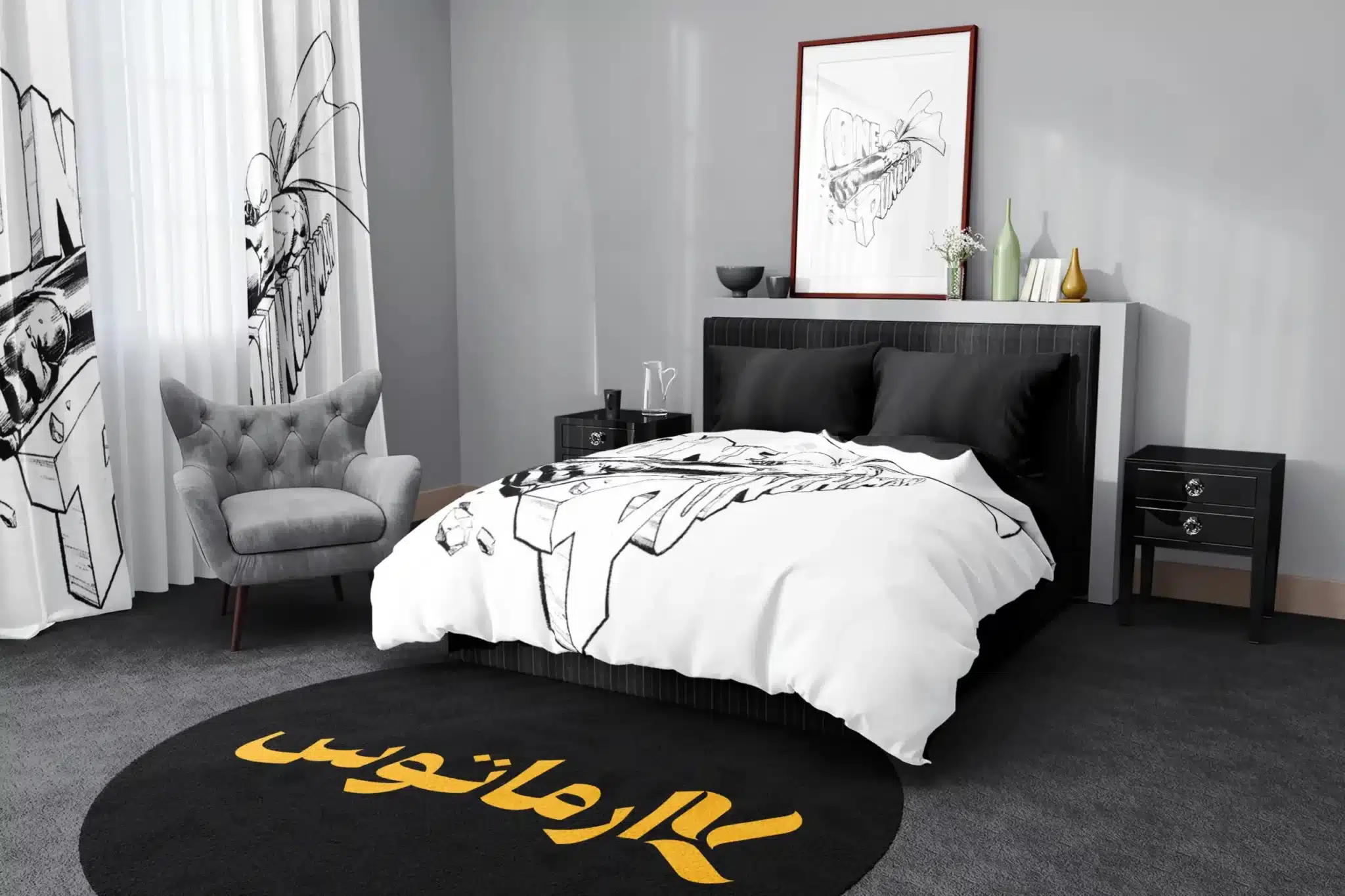 4. روتختی‌های وان پانچ من: روتختی‌های "کارماتوس" با طراحی‌های متنوع از شخصیت‌های محبوب این انیمه، می‌توانند اتاق خواب شما را به دنیای "وان پانچ من" تبدیل کنند.