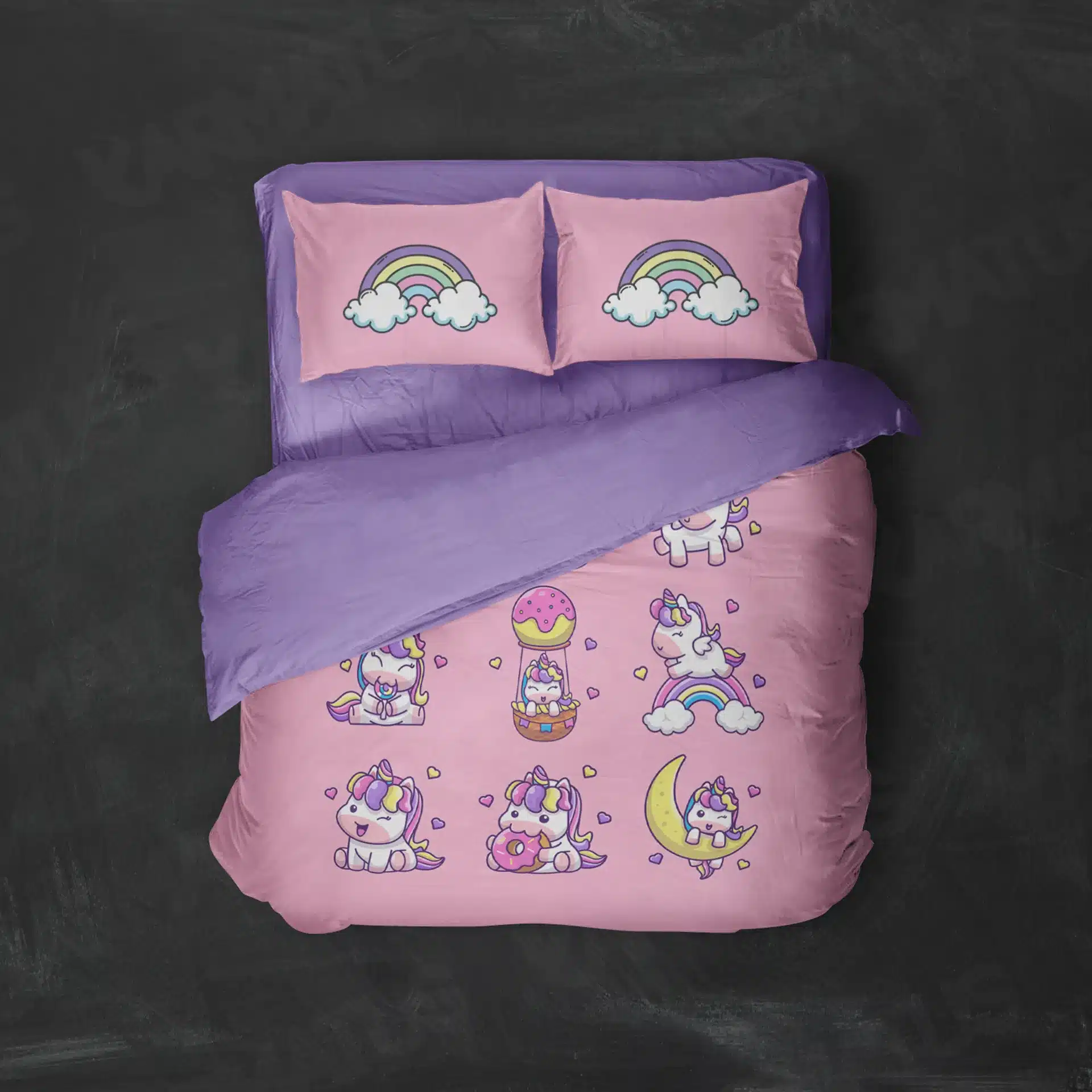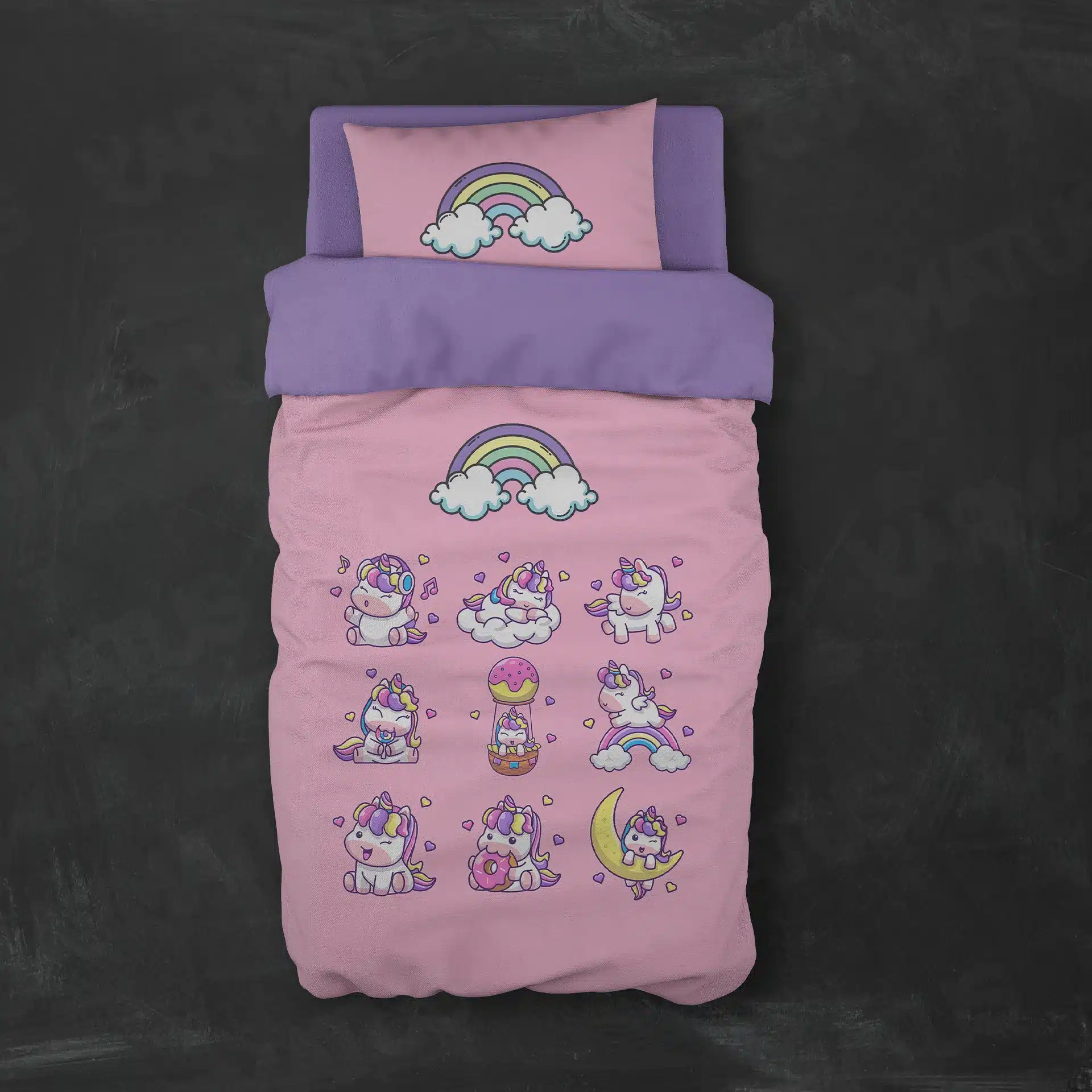 تکه های مورد استفاده در یک سرویس روتختی طرح یونیکورن Unicorn :