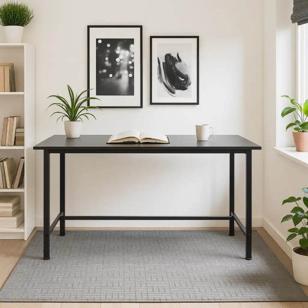 این میز اداری با طراحی مینیمال و جذاب، انتخابی بینقص برای دفاتر، استودیوها، اتاقهای کار و حتی خانههای مدرن است. صفحه MDF مشکی، ظرافت و حس لوکس بودن را به فضای شما میآورد و پایههای فلزی مشکی با طراحی ویژه و مستحکم، تضمین دوام و پایداری در استفاده طولانی مدت هستند.