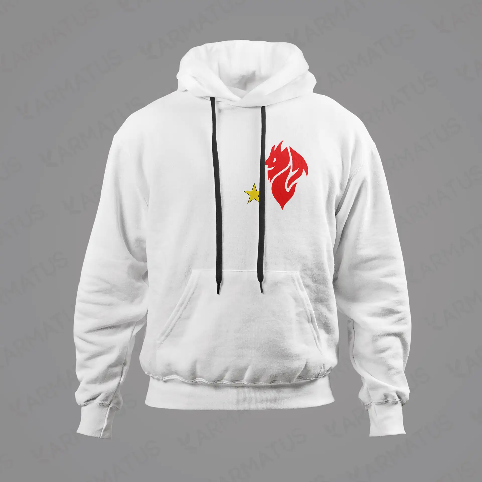 • در کارماتوس، کنتراست رنگ‌ها مهم است؛ طرح شما متناسب با رنگ هودی ادیت می‌شود تا بهترین نمایش را داشته باشد.