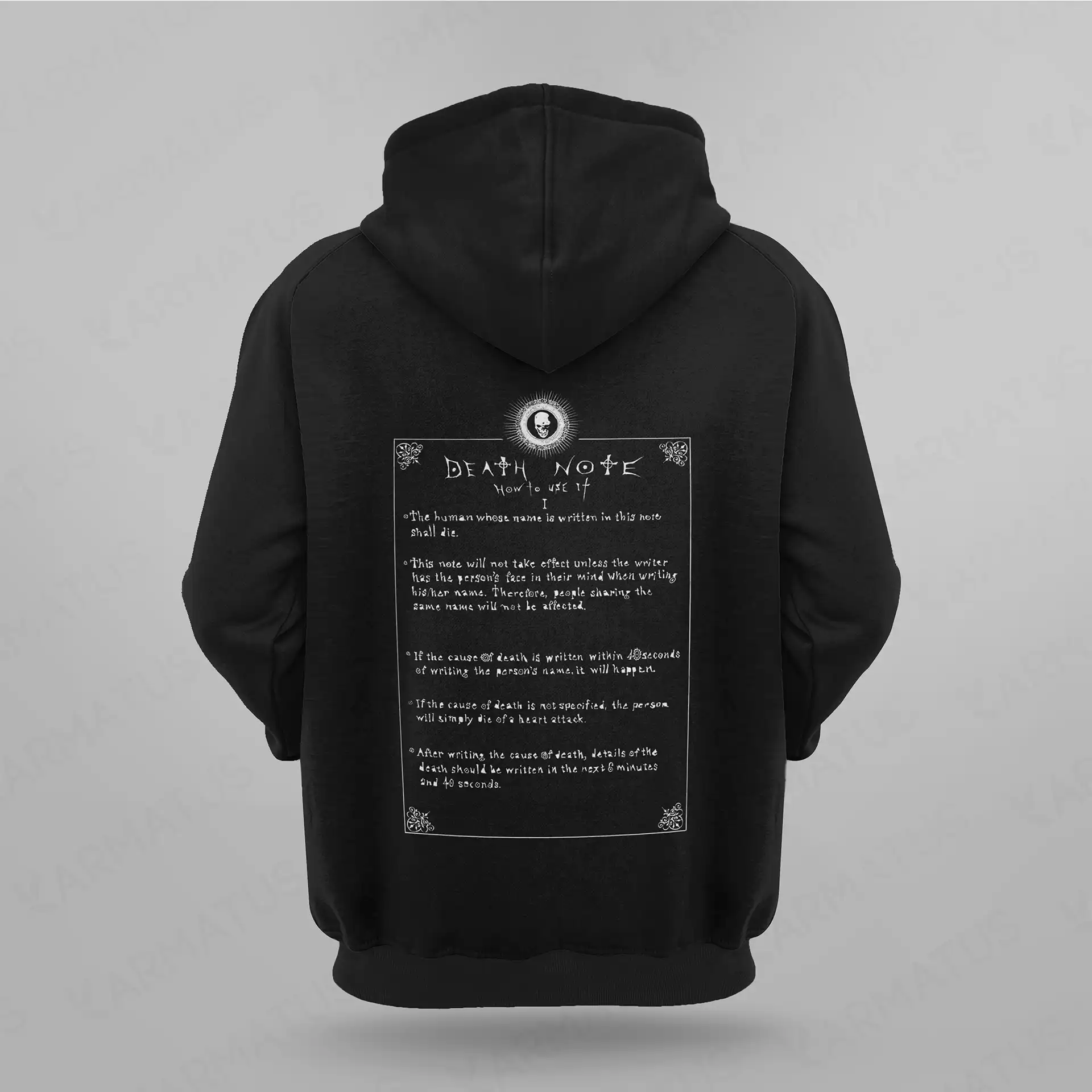 ویژگی های اصلی هودی طرح دفترچه مرگ Death Note برند کارماتوس