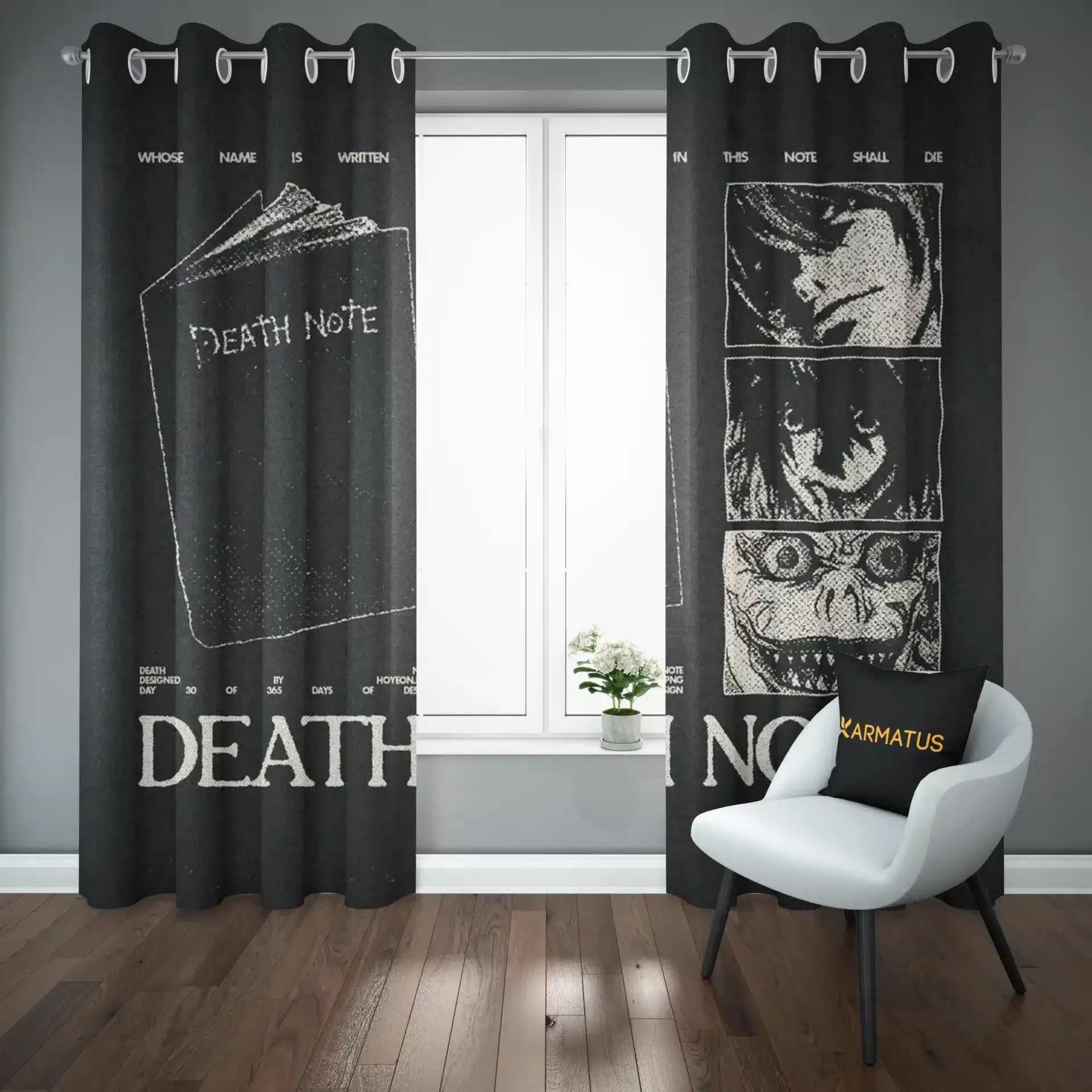 ماندگاری بسیار بالای طرح چاپی پرده پانچ انیمه دفترچه مرگ Death Note