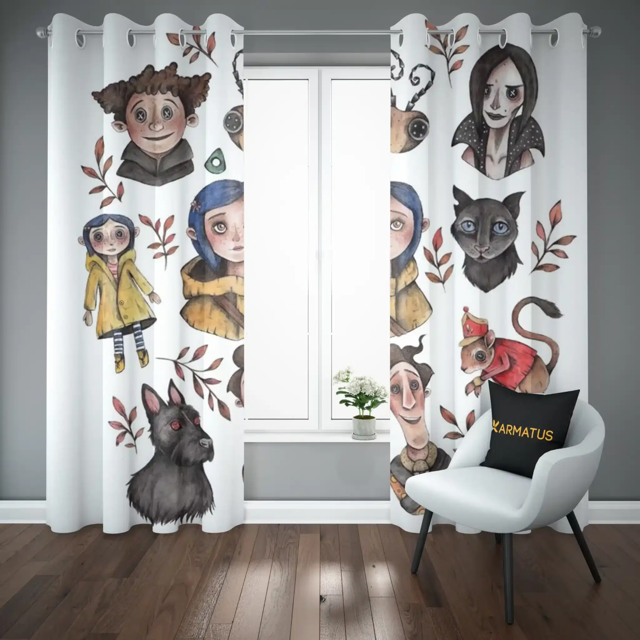 ماندگاری بسیار بالای طرح چاپی پرده پانچ انیمیشن کورالاین Coraline