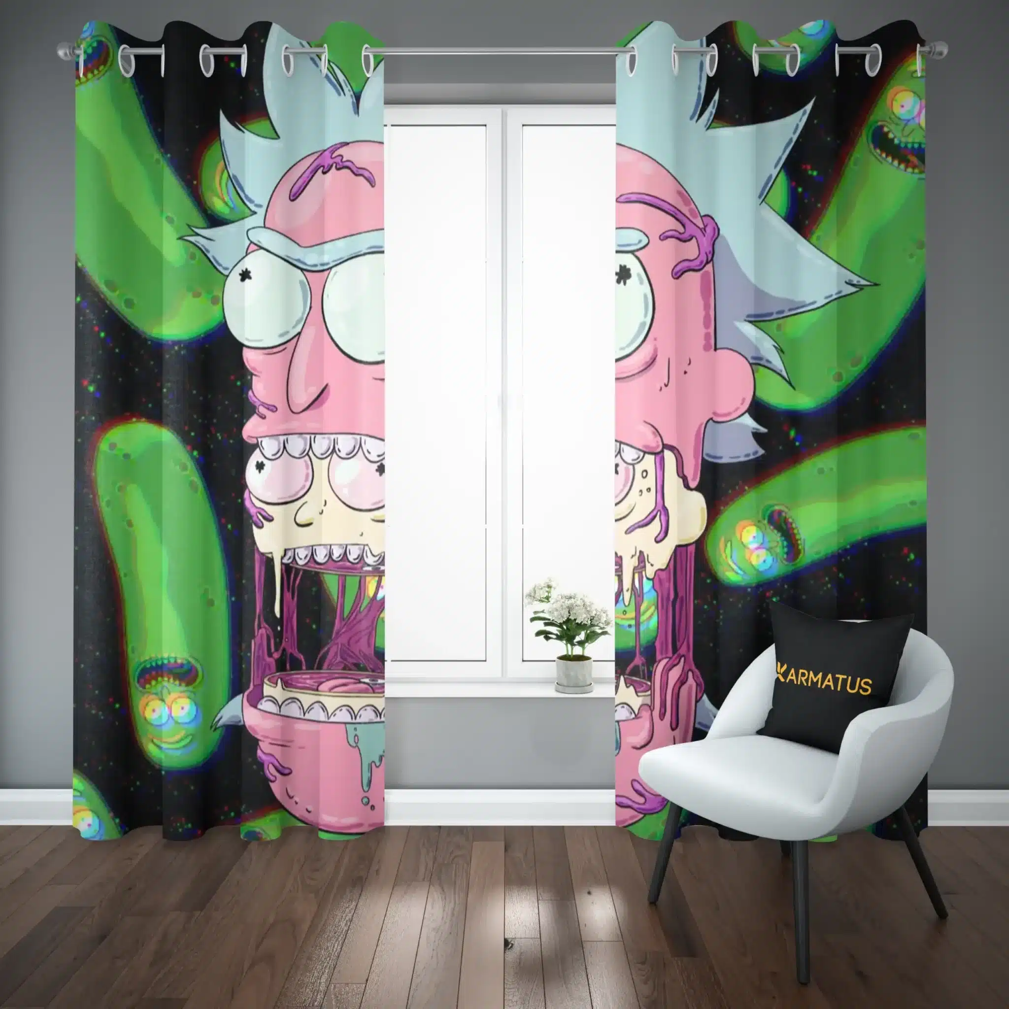 ماندگاری بسیار بالای طرح چاپی پرده پانچ ریک و مورتی Rick And Morty