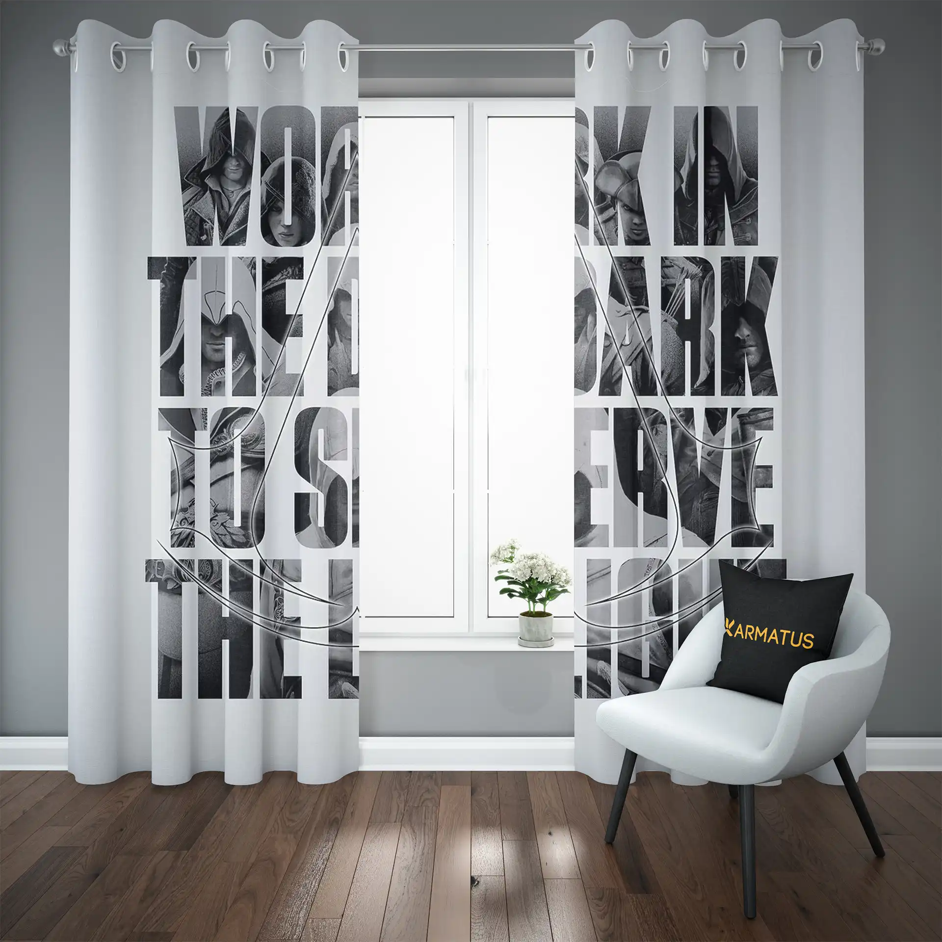 ماندگاری بسیار بالای طرح چاپی پرده پانچ طرح اساسین کرید Assassins Creed