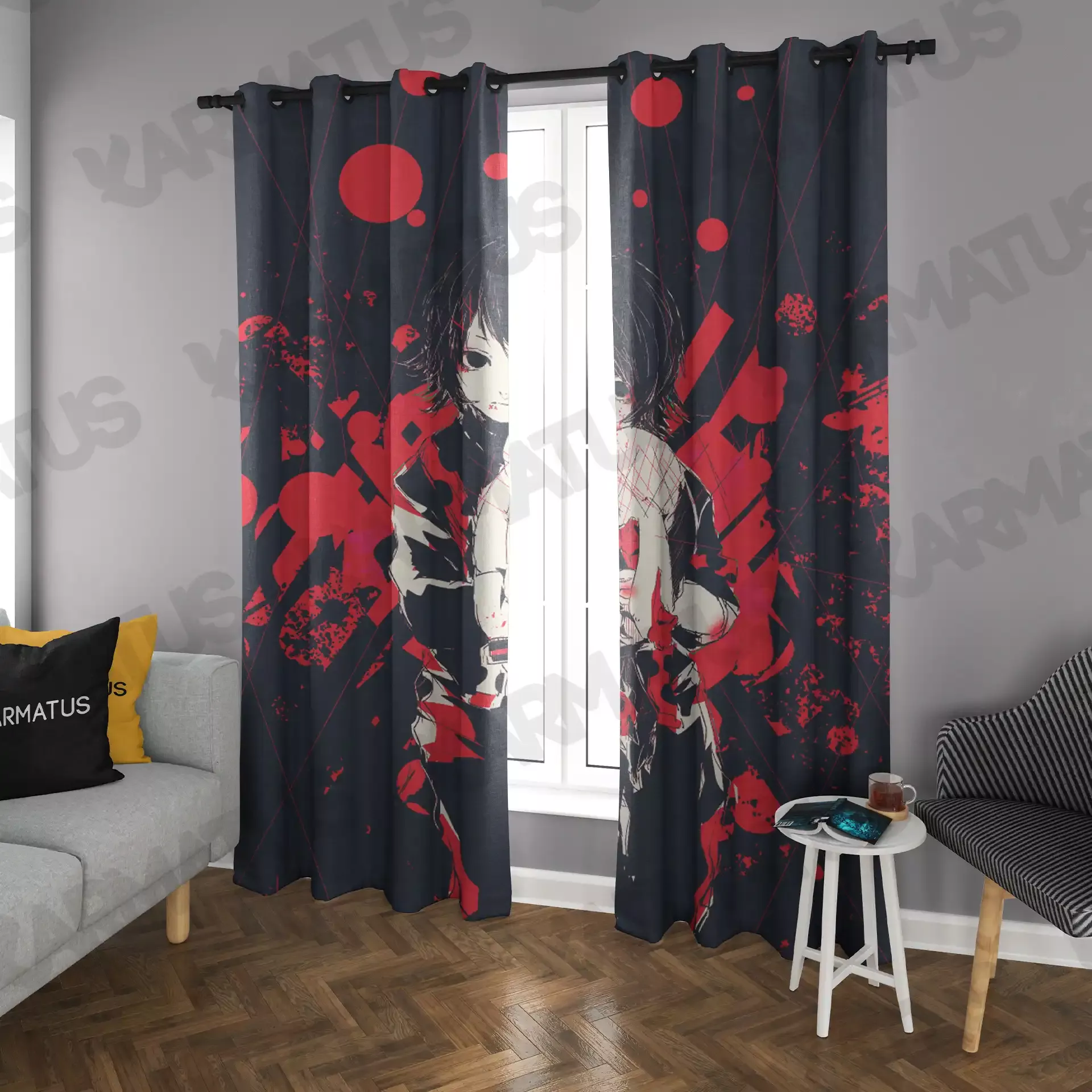ماندگاری بسیار بالای طرح چاپی پرده پانچ طرح انیمه توکیو غول Tokyo Ghoul
