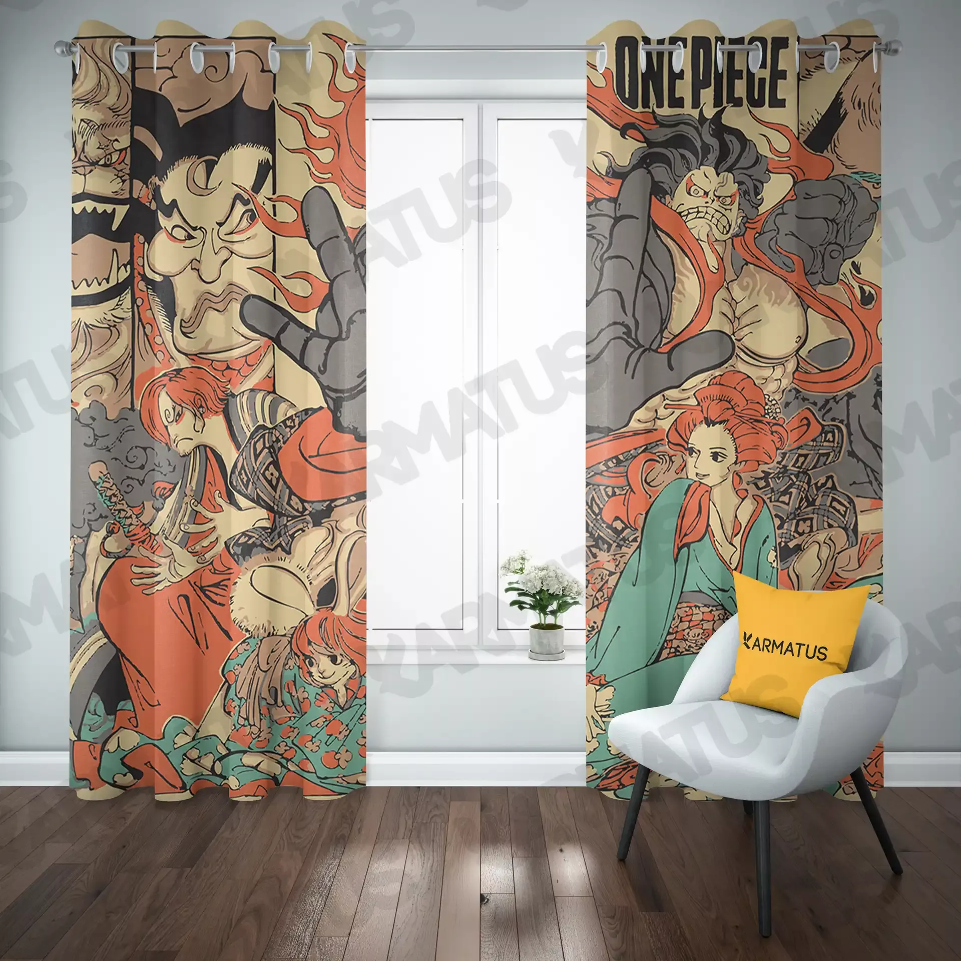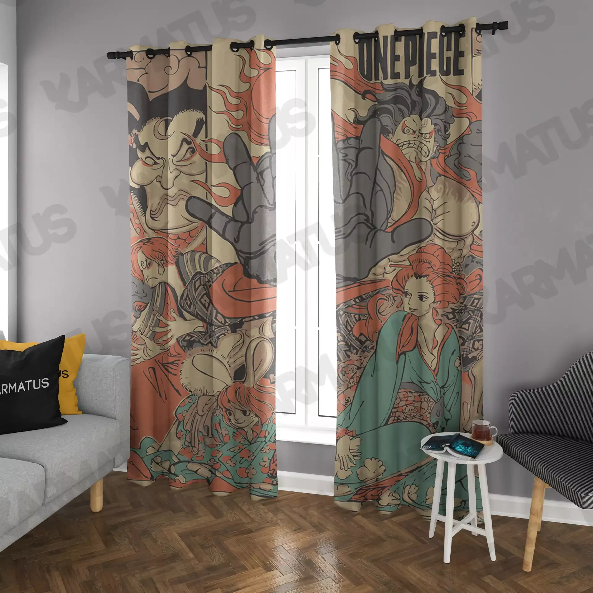 ماندگاری بسیار بالای طرح چاپی پرده پانچ طرح انیمه وان پیس One Piece