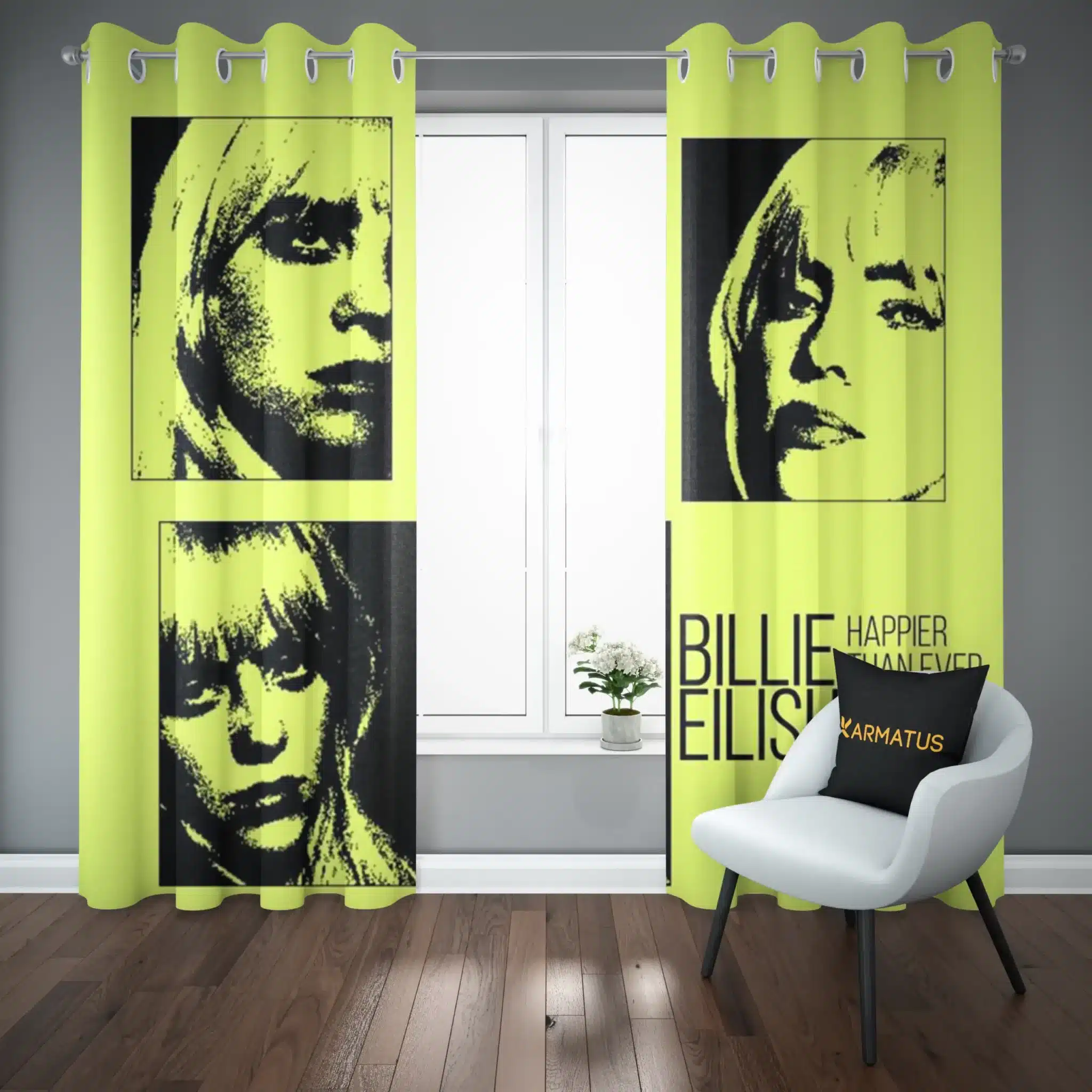 ماندگاری بسیار بالای طرح چاپی پرده پانچ طرح بیلی آیلیش Billie Eilish