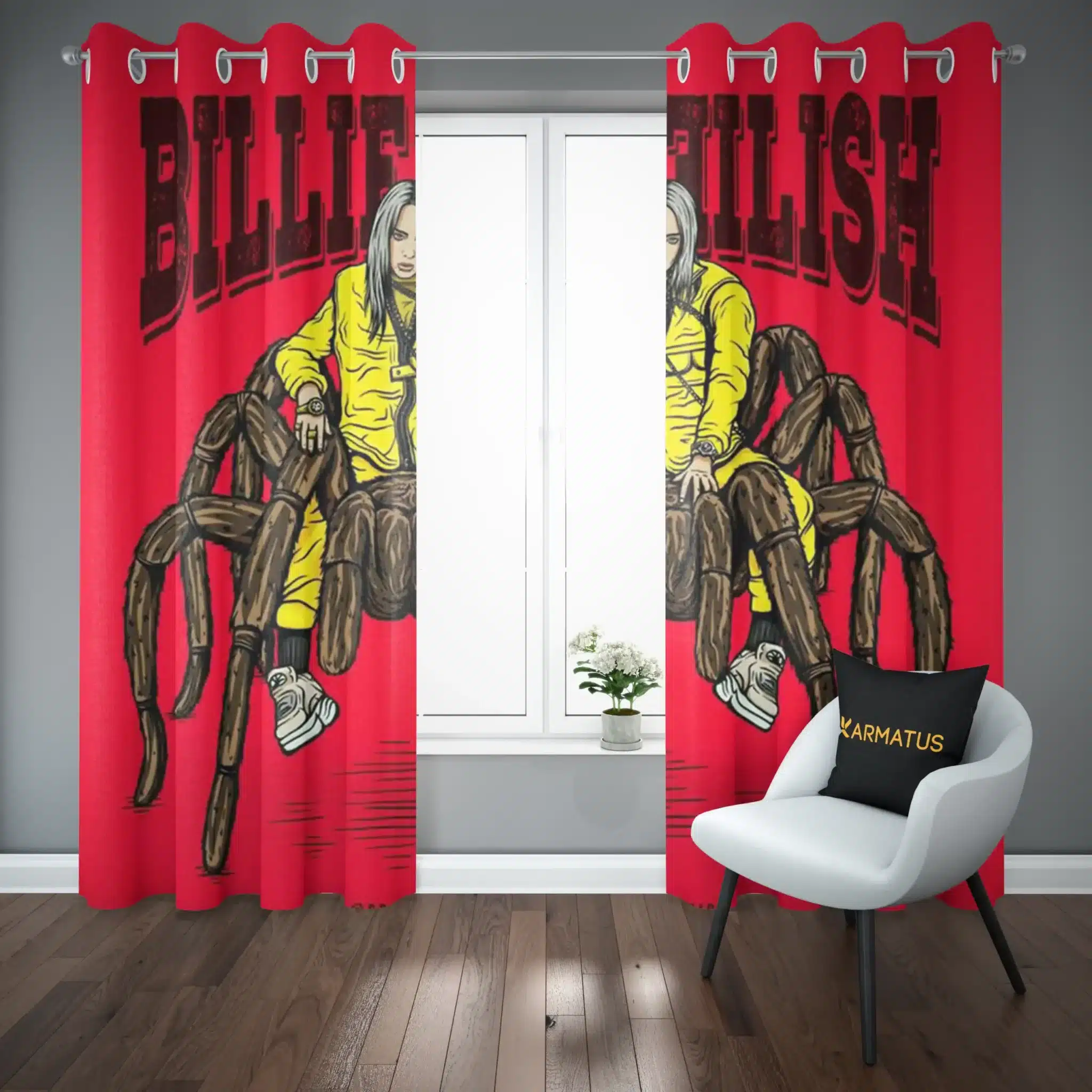 ماندگاری بسیار بالای طرح چاپی پرده پانچ طرح بیلی آیلیش Billie Eilish