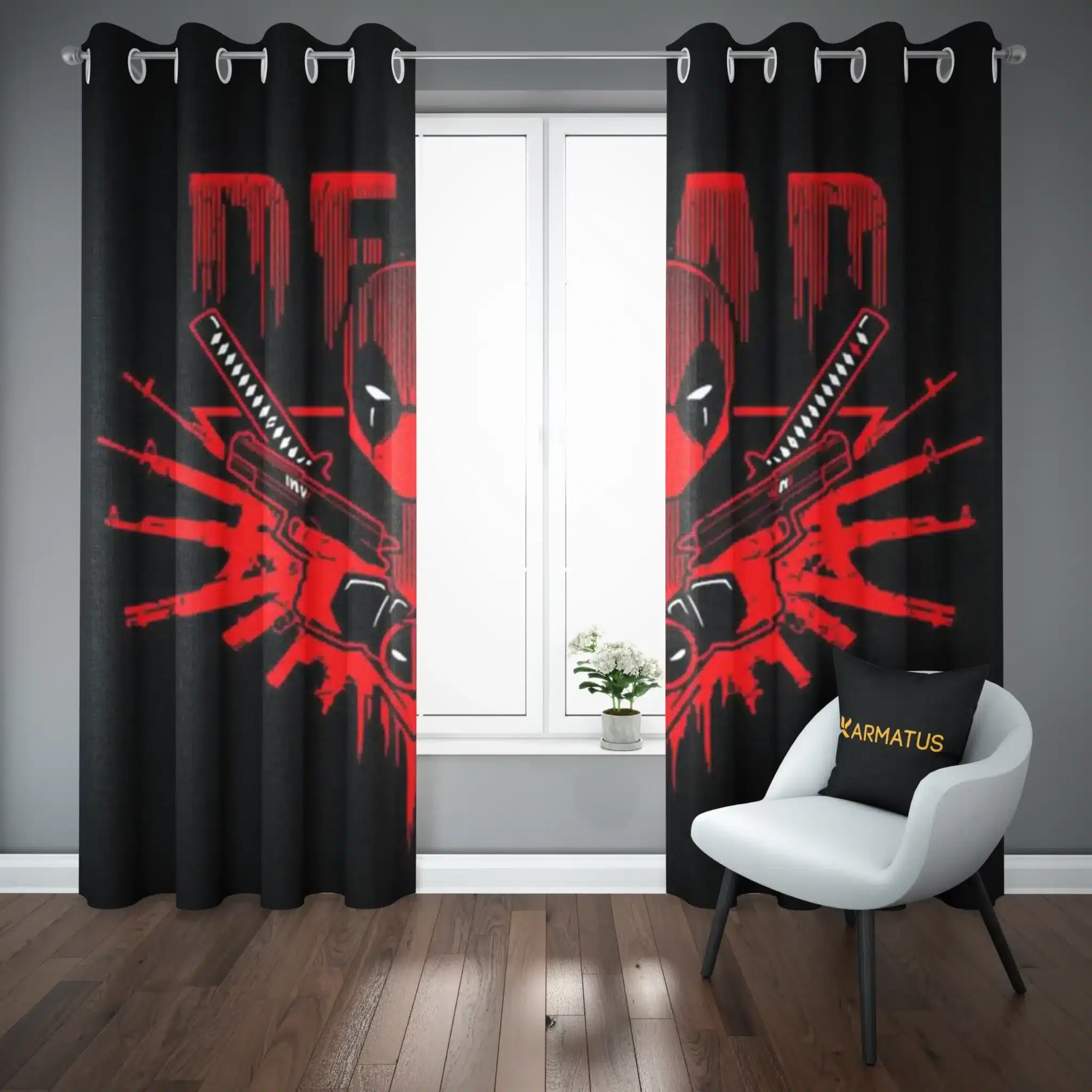 ماندگاری بسیار بالای طرح چاپی پرده پانچ طرح ددپول Deadpool