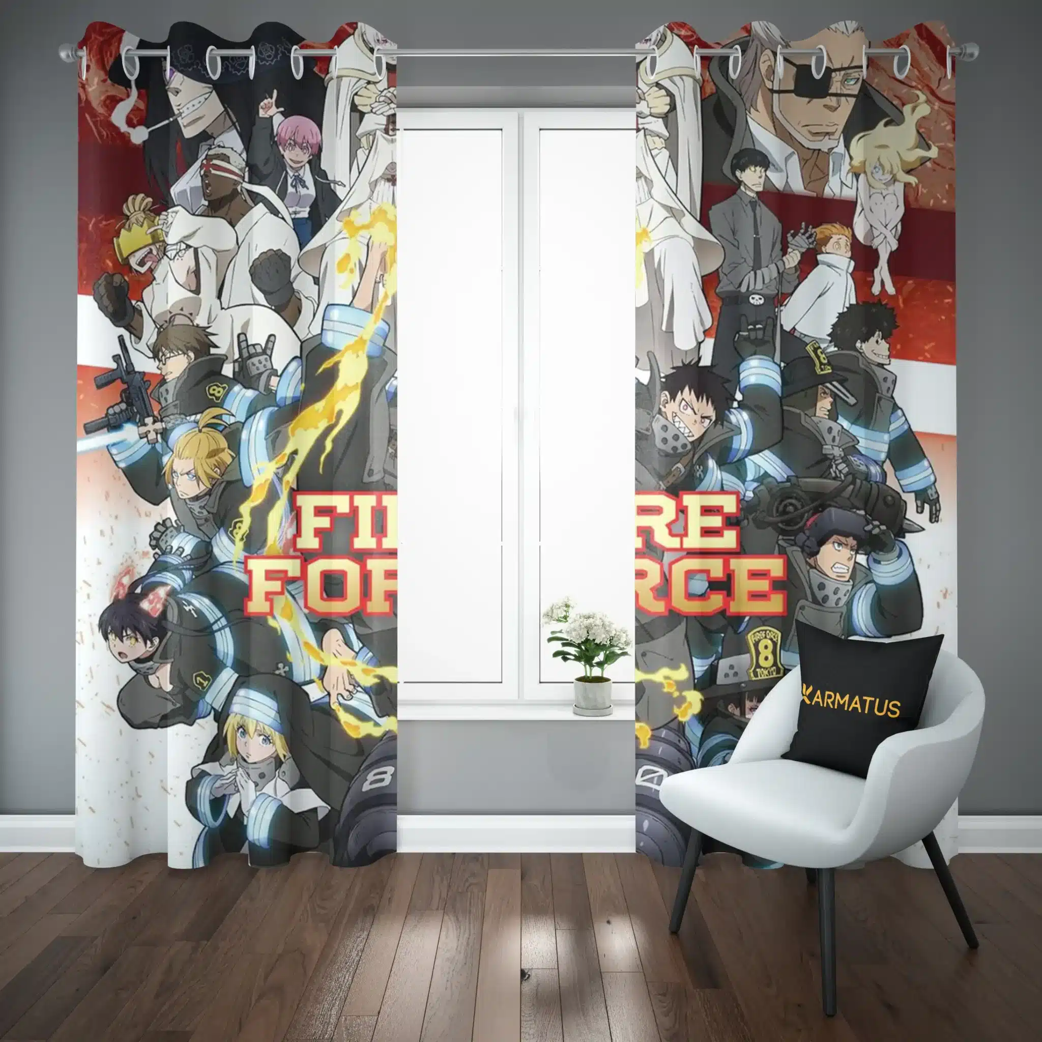 ماندگاری بسیار بالای طرح چاپی پرده پانچ طرح فایر فورس Fire Force