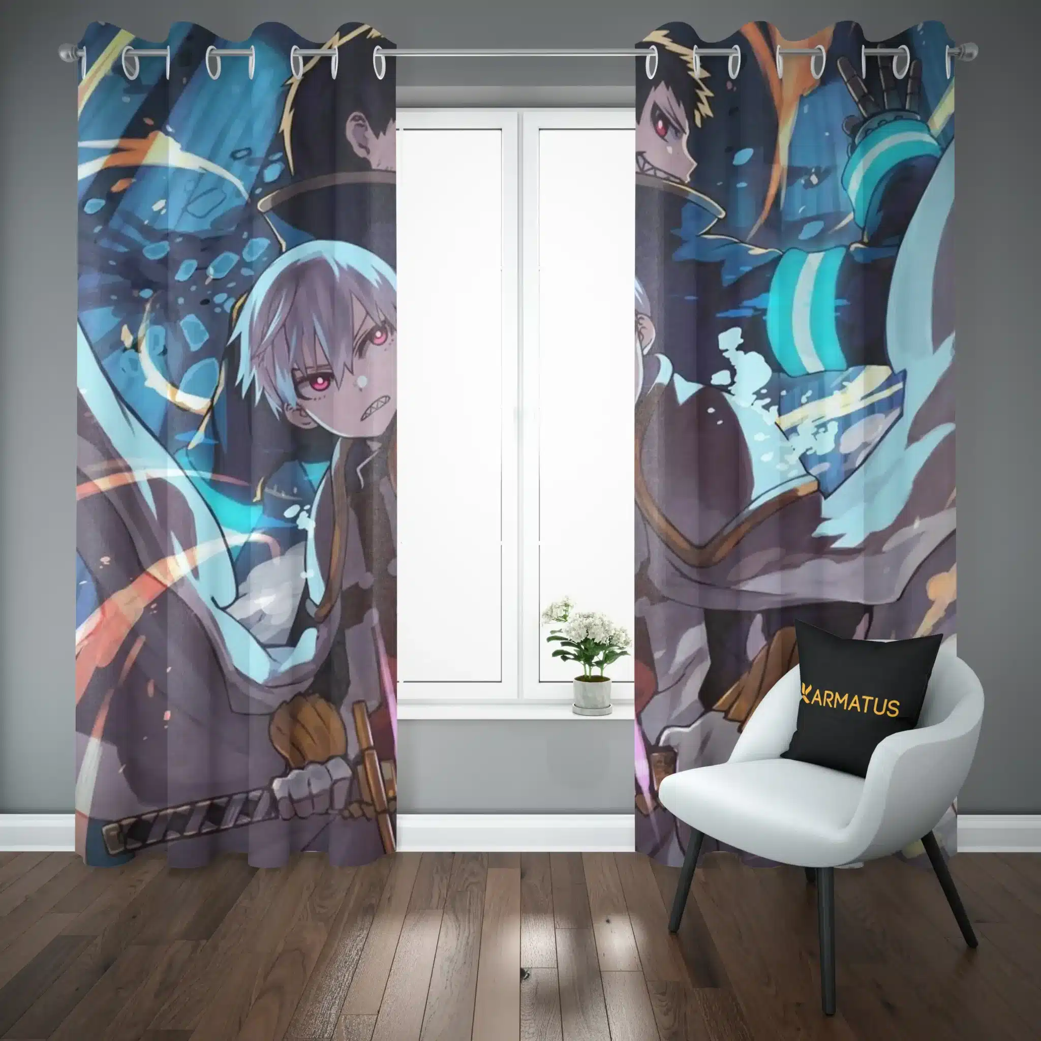 ماندگاری بسیار بالای طرح چاپی پرده پانچ طرح فایر فورس Fire Force