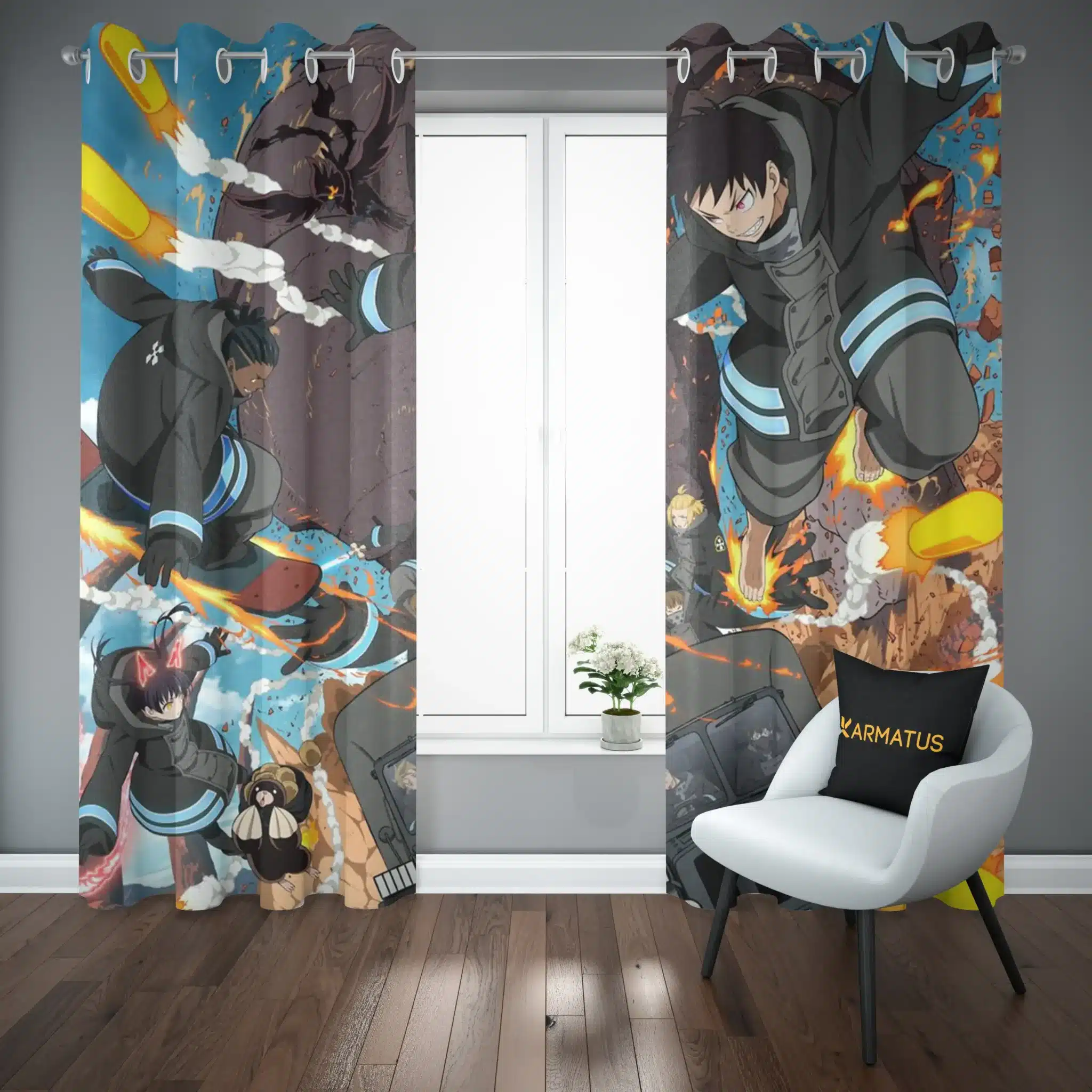 ماندگاری بسیار بالای طرح چاپی پرده پانچ طرح فایر فورس Fire Force