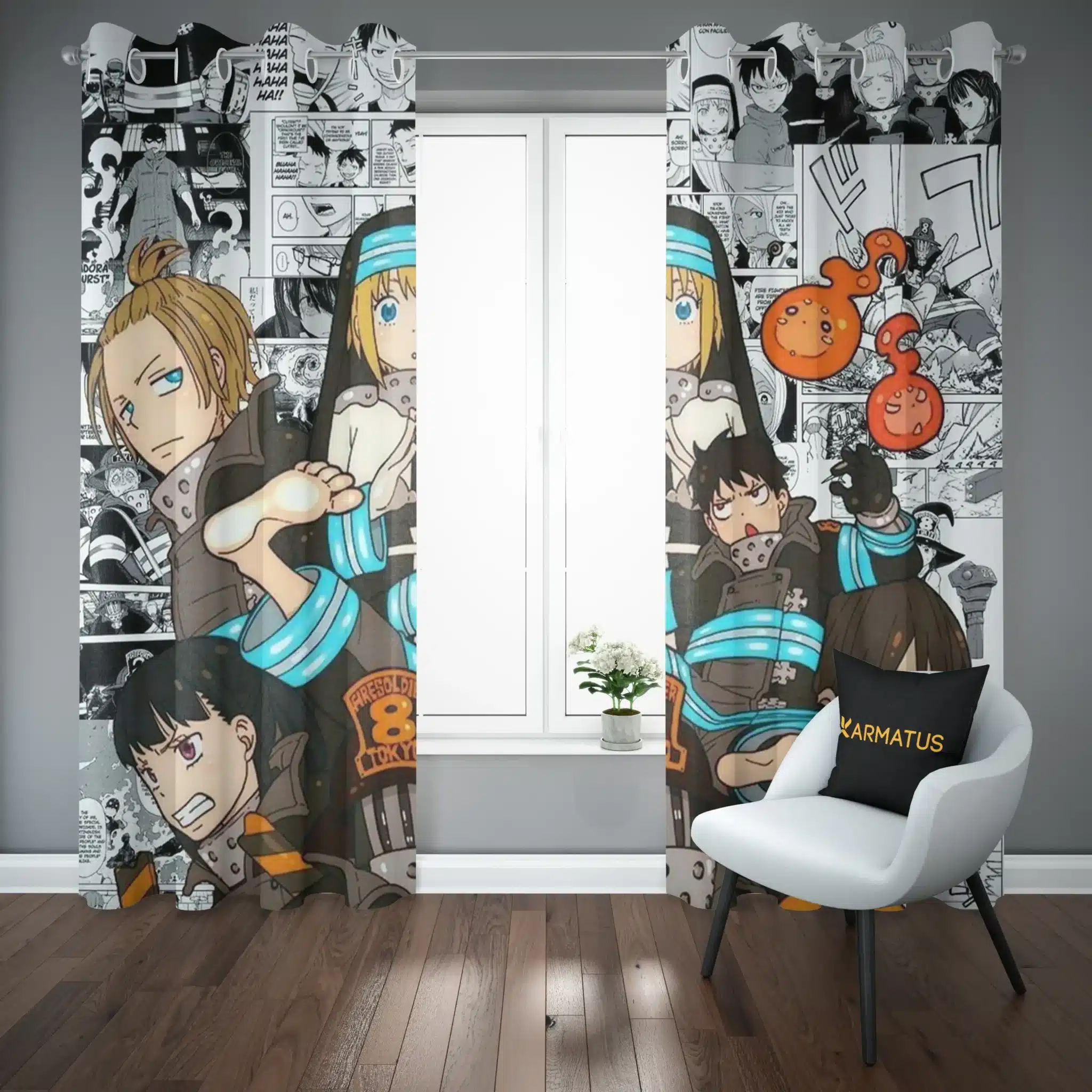 ماندگاری بسیار بالای طرح چاپی پرده پانچ طرح فایر فورس Fire Force