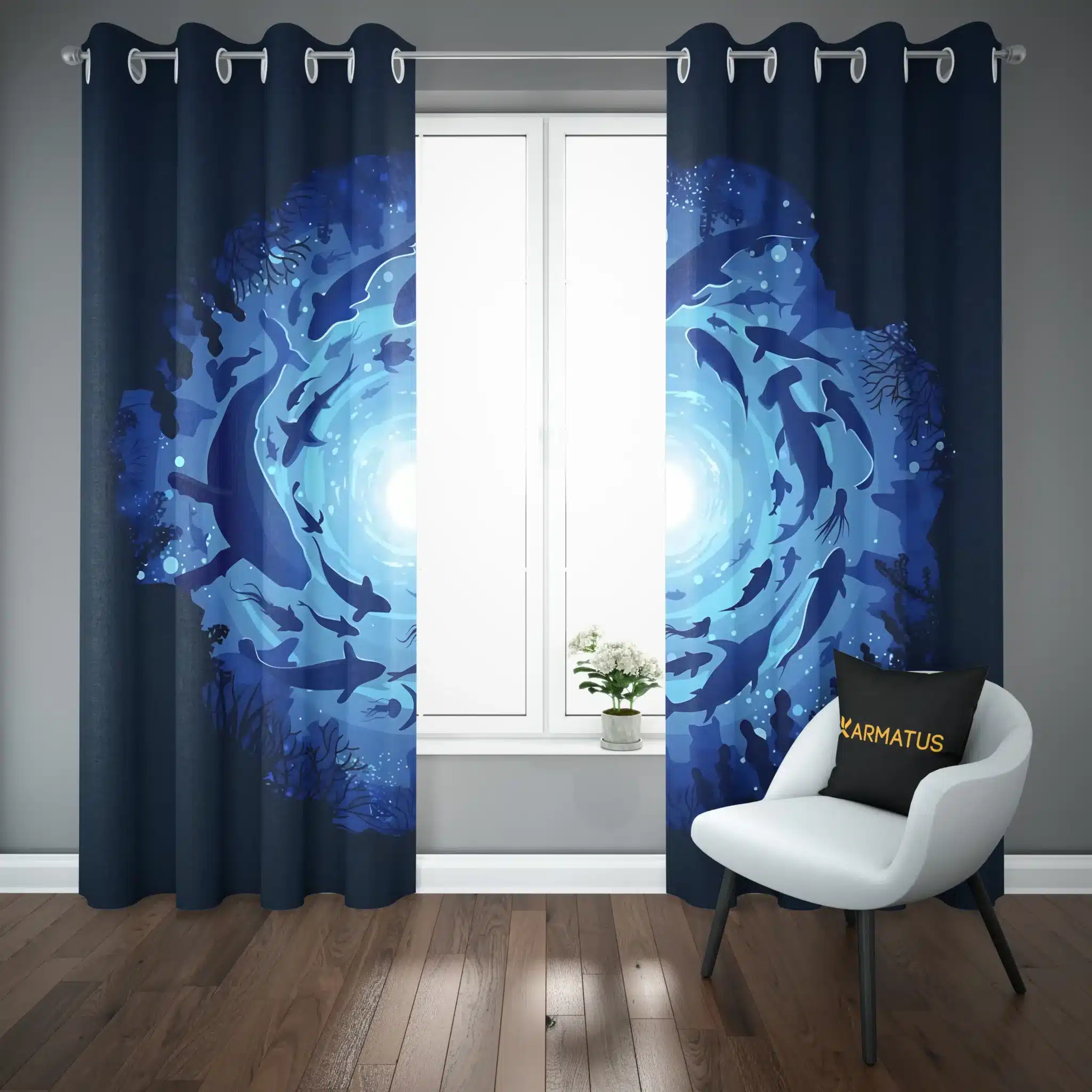 پرده پانچ طرح وال و دلفین Whale And Dolphin کد 9