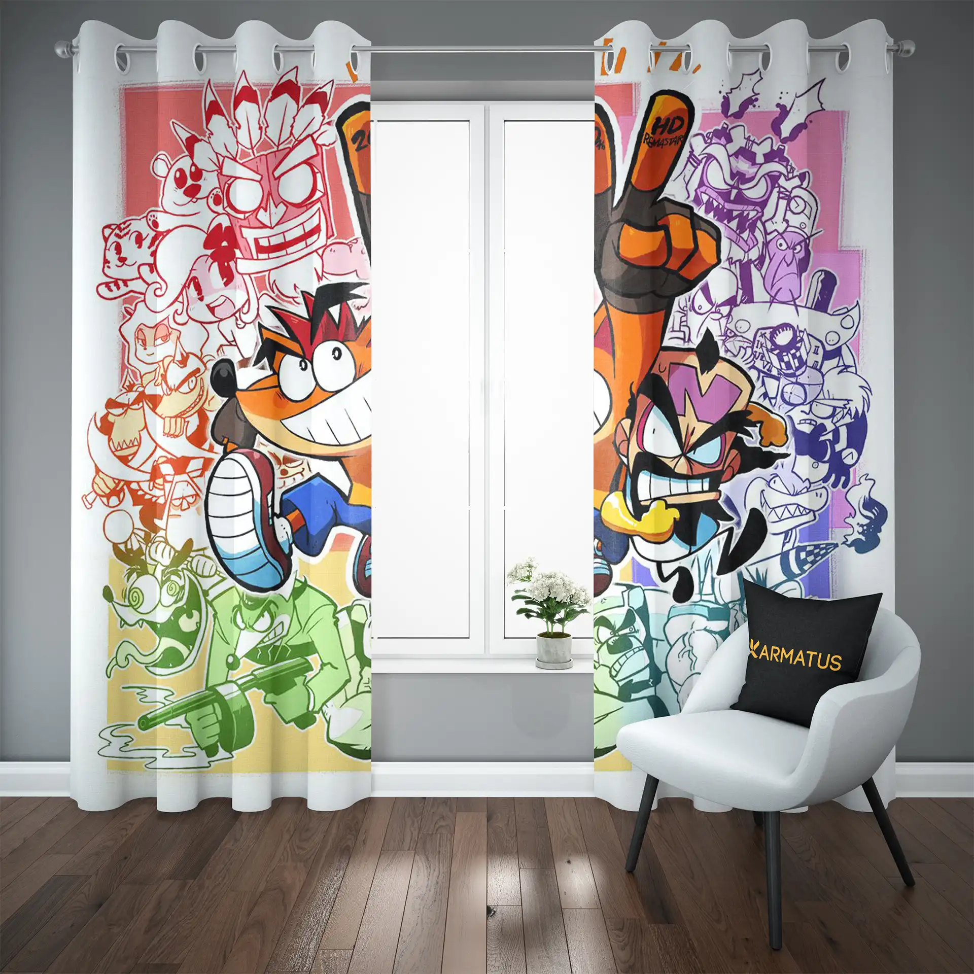 ماندگاری بسیار بالای طرح چاپی پرده پانچ طرح کراش باندیکوت Crash Bandicoot