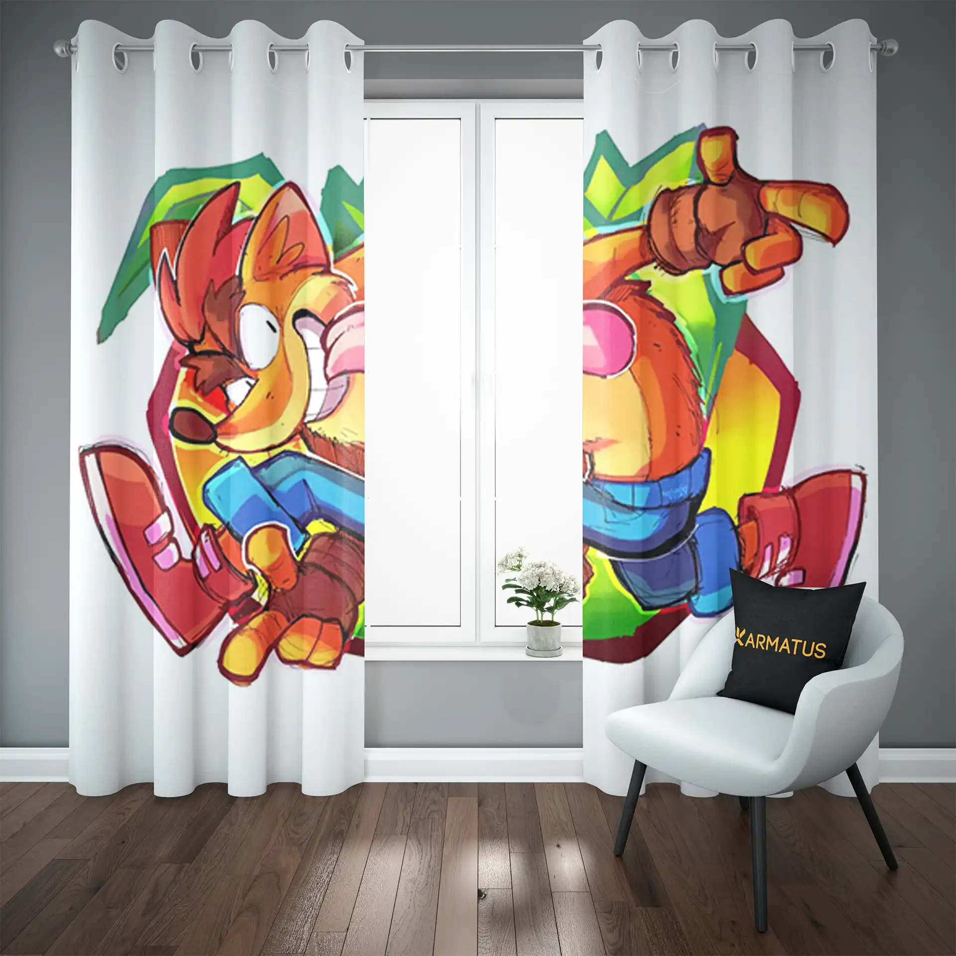 ماندگاری بسیار بالای طرح چاپی پرده پانچ طرح کراش باندیکوت Crash Bandicoot