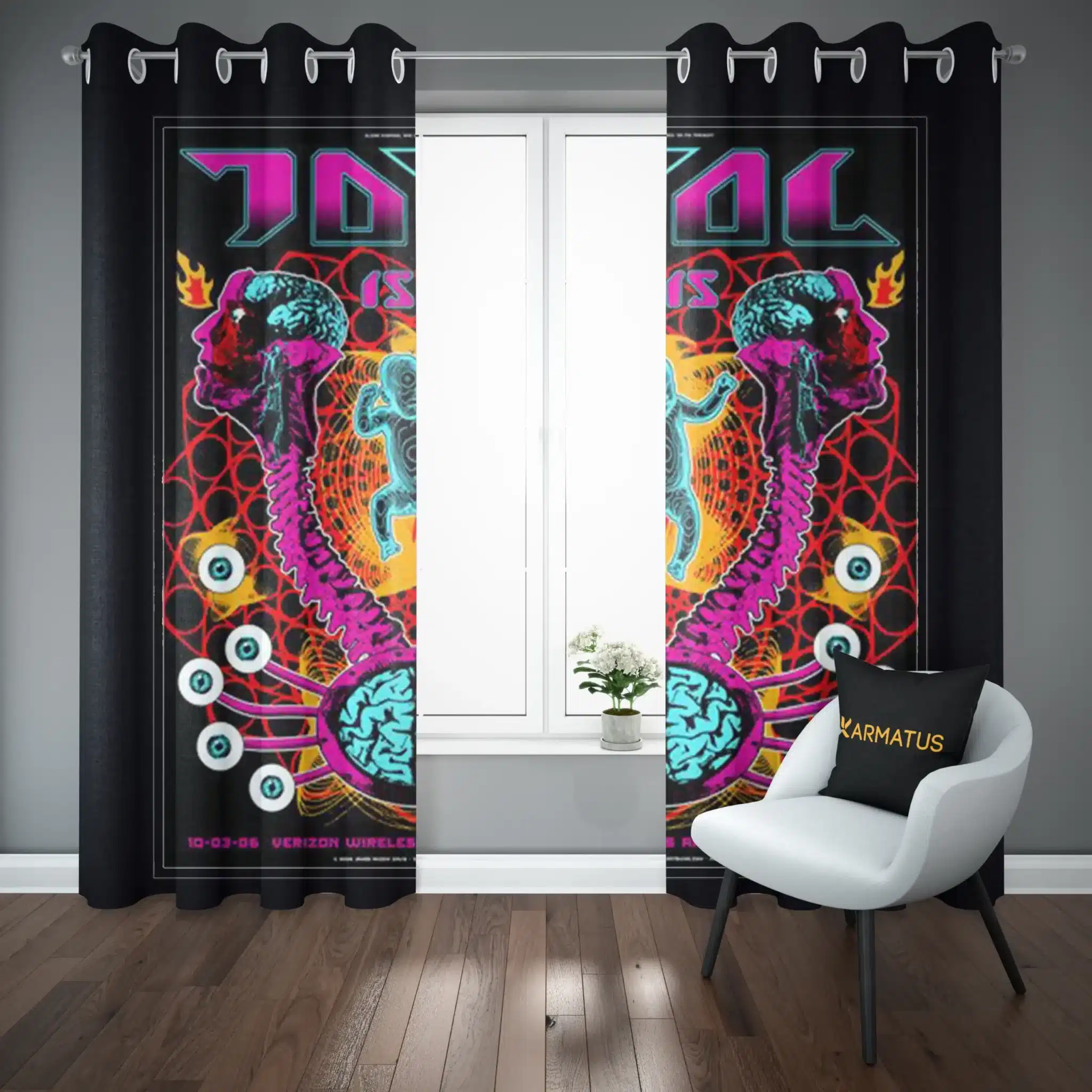 ماندگاری بسیار بالای طرح چاپی پرده پانچ طرح گروه موسیقی تول Tool