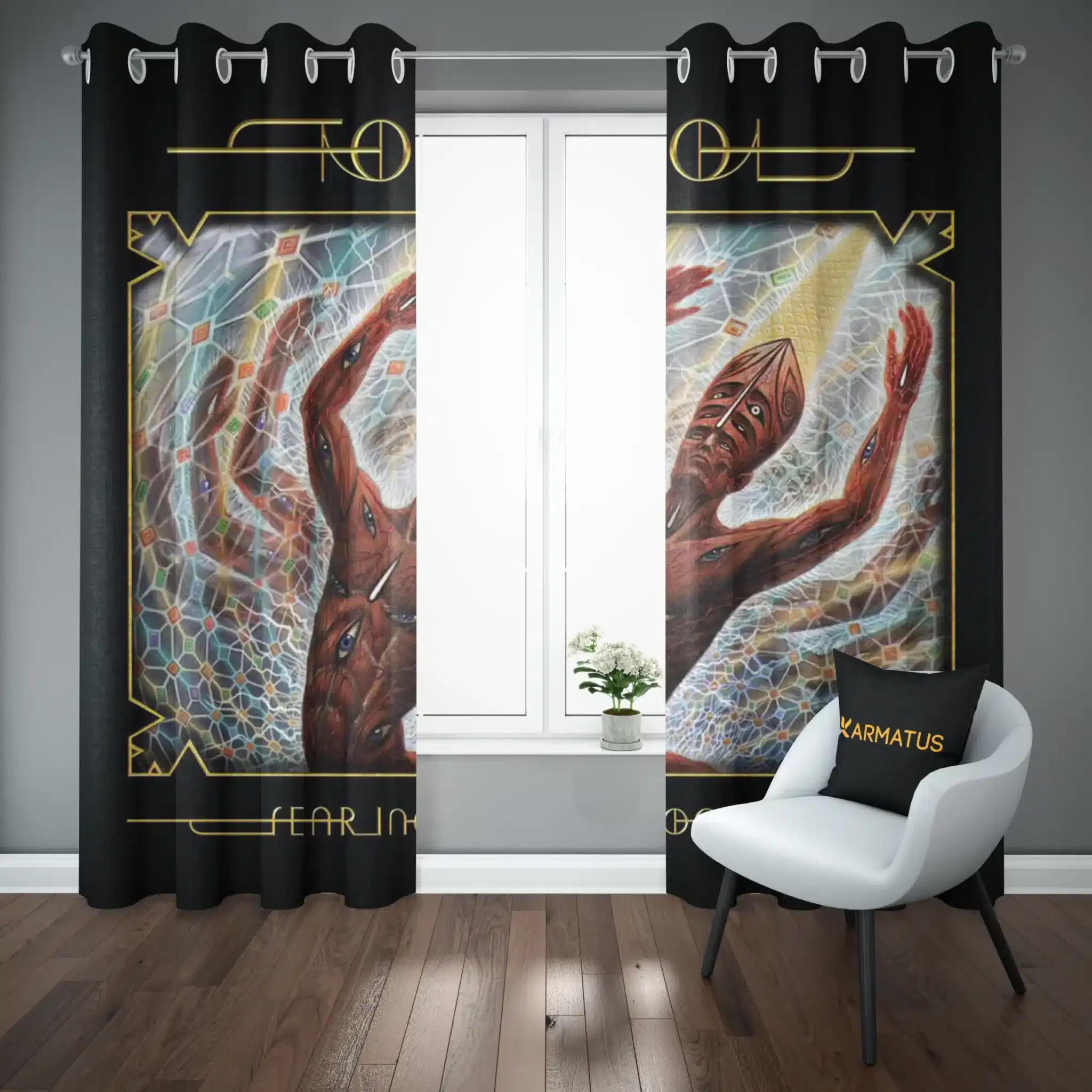 ماندگاری بسیار بالای طرح چاپی پرده پانچ طرح گروه موسیقی تول Tool