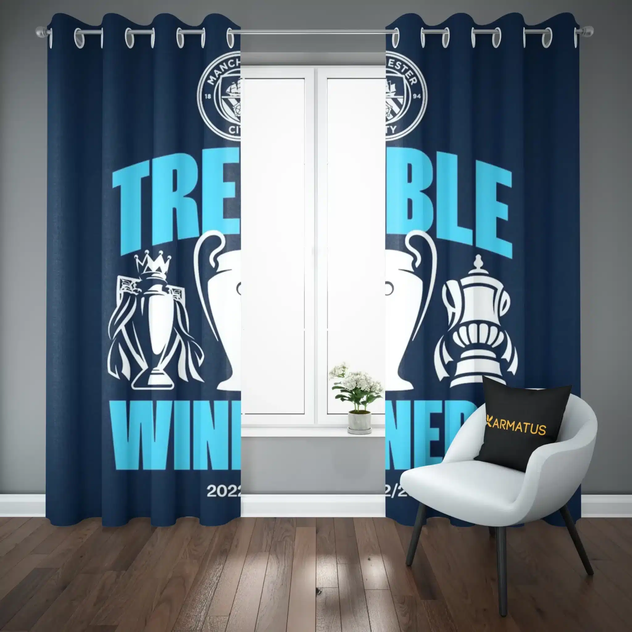 ماندگاری بسیار بالای طرح چاپی پرده پانچ منچستر سیتی Manchester City