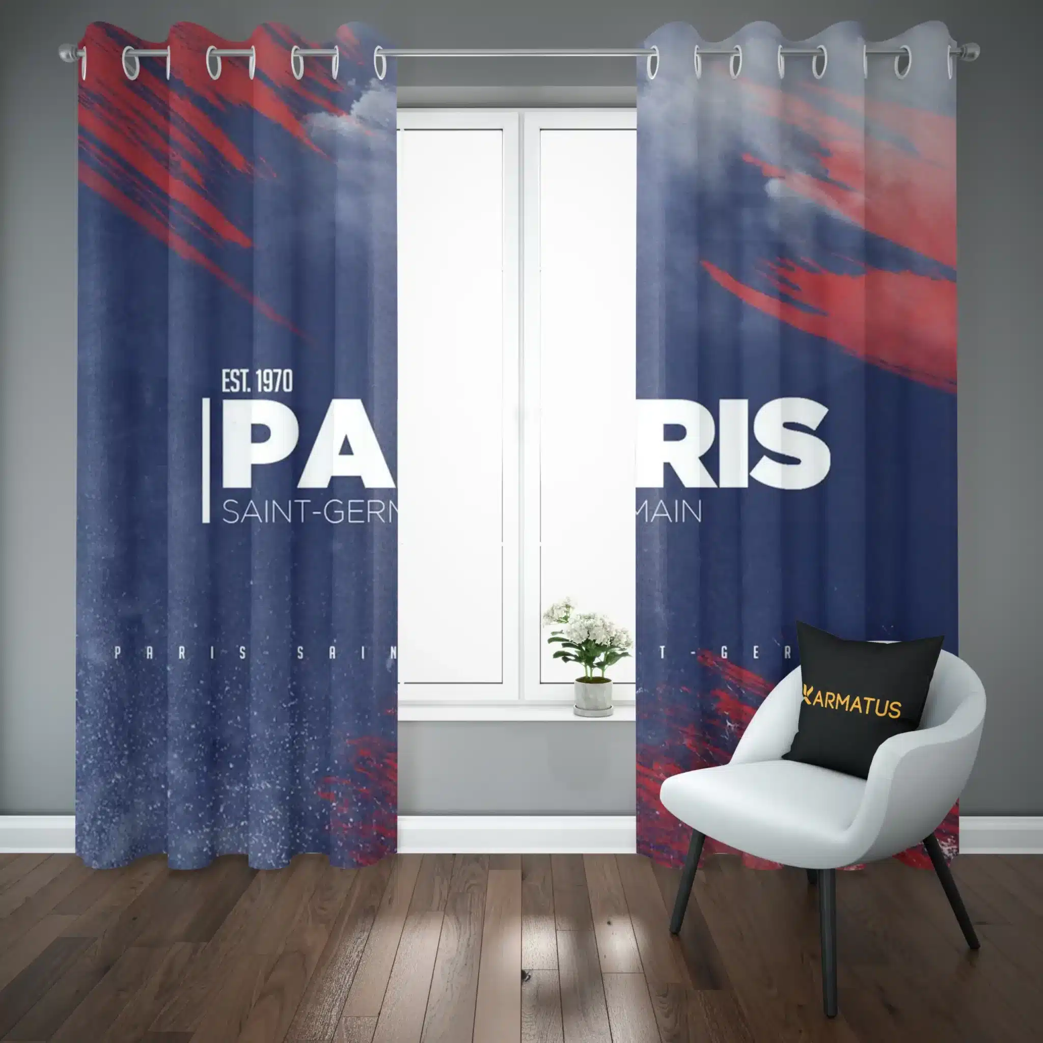 ماندگاری بسیار بالای طرح چاپی پرده پانچ پاری سن ژرمن Paris Saint Germain