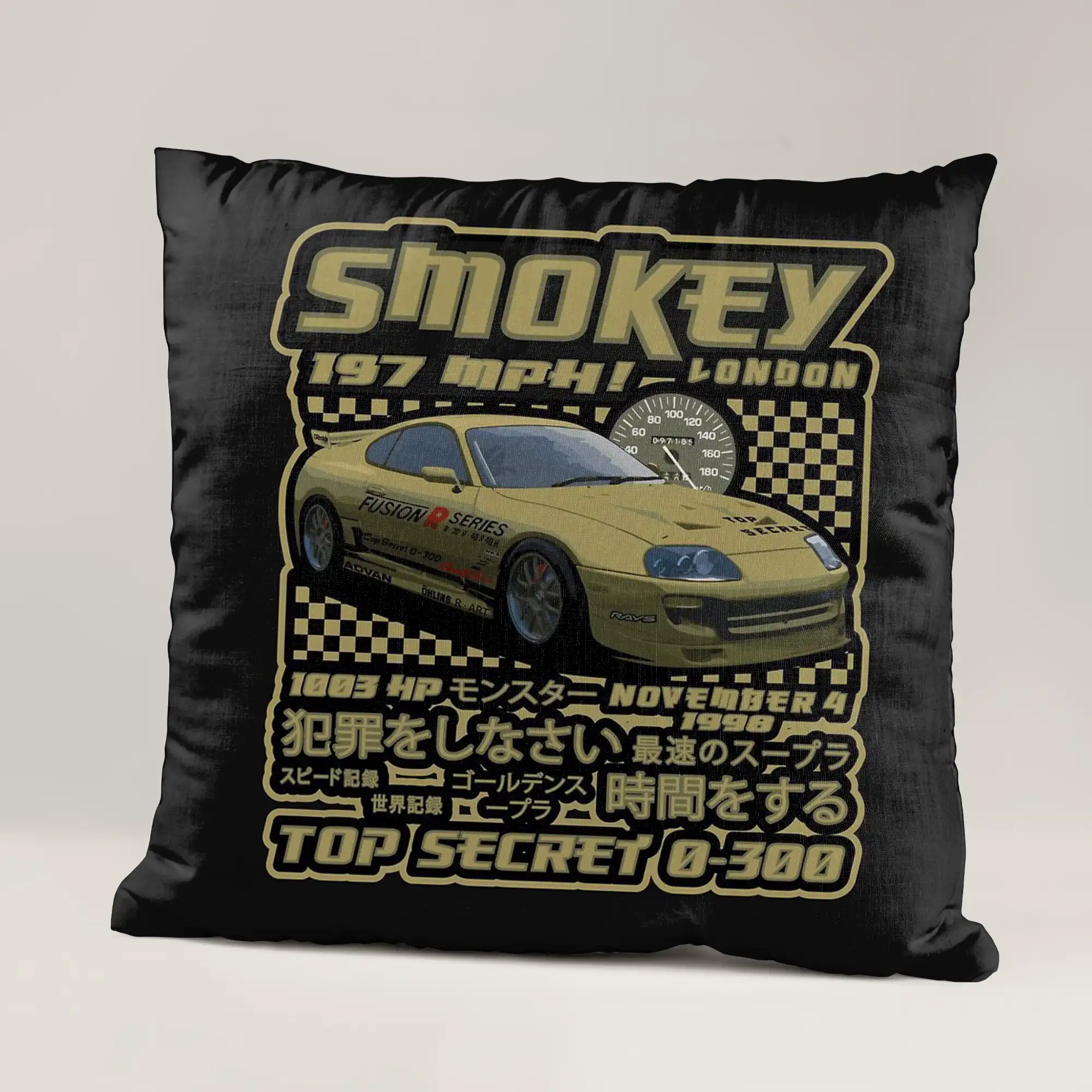 کوسن طرح تویوتا سوپرا Toyota Supra از پارچه مخمل با کیفیت بالا تولید شده است. این پارچه: