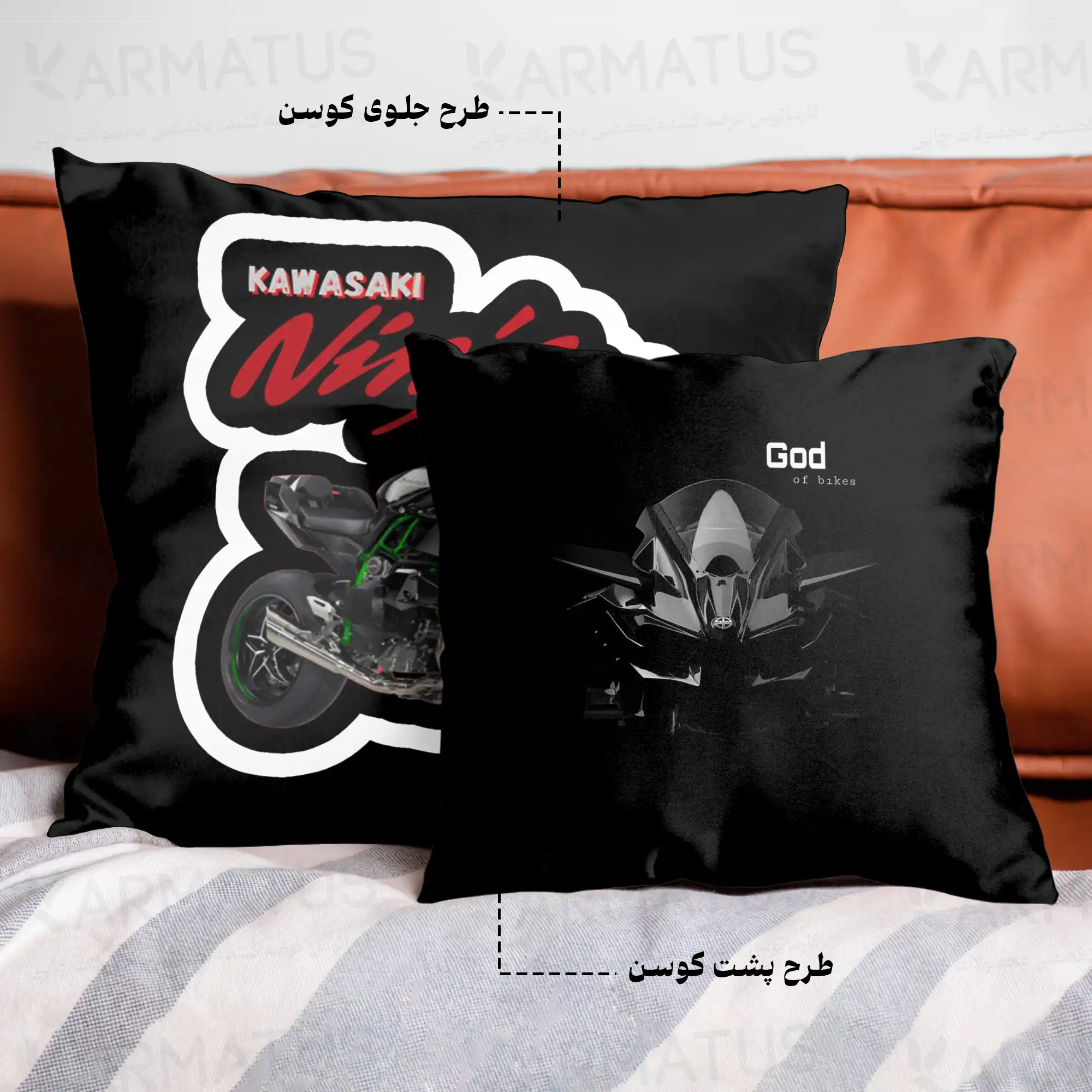 کوسن طرح کاوازاکی KAWASAKI : طراحی منحصربه‌فرد برای علاقمندان موتورسیکلت