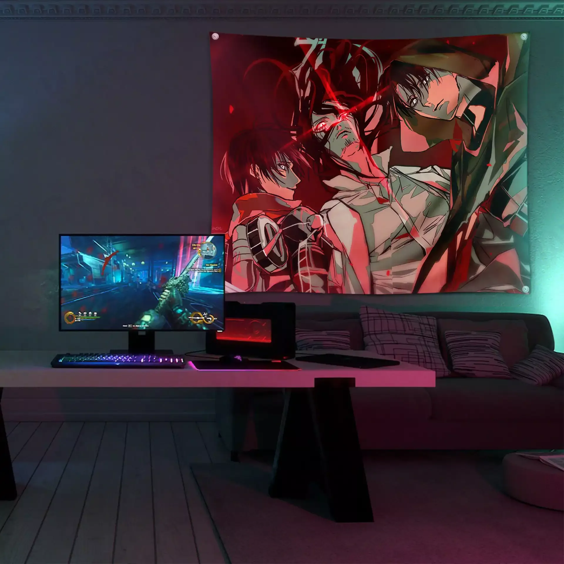 پارچه چاپ شده با کیفیت بالا طرح انیمه اتک آن تایتان