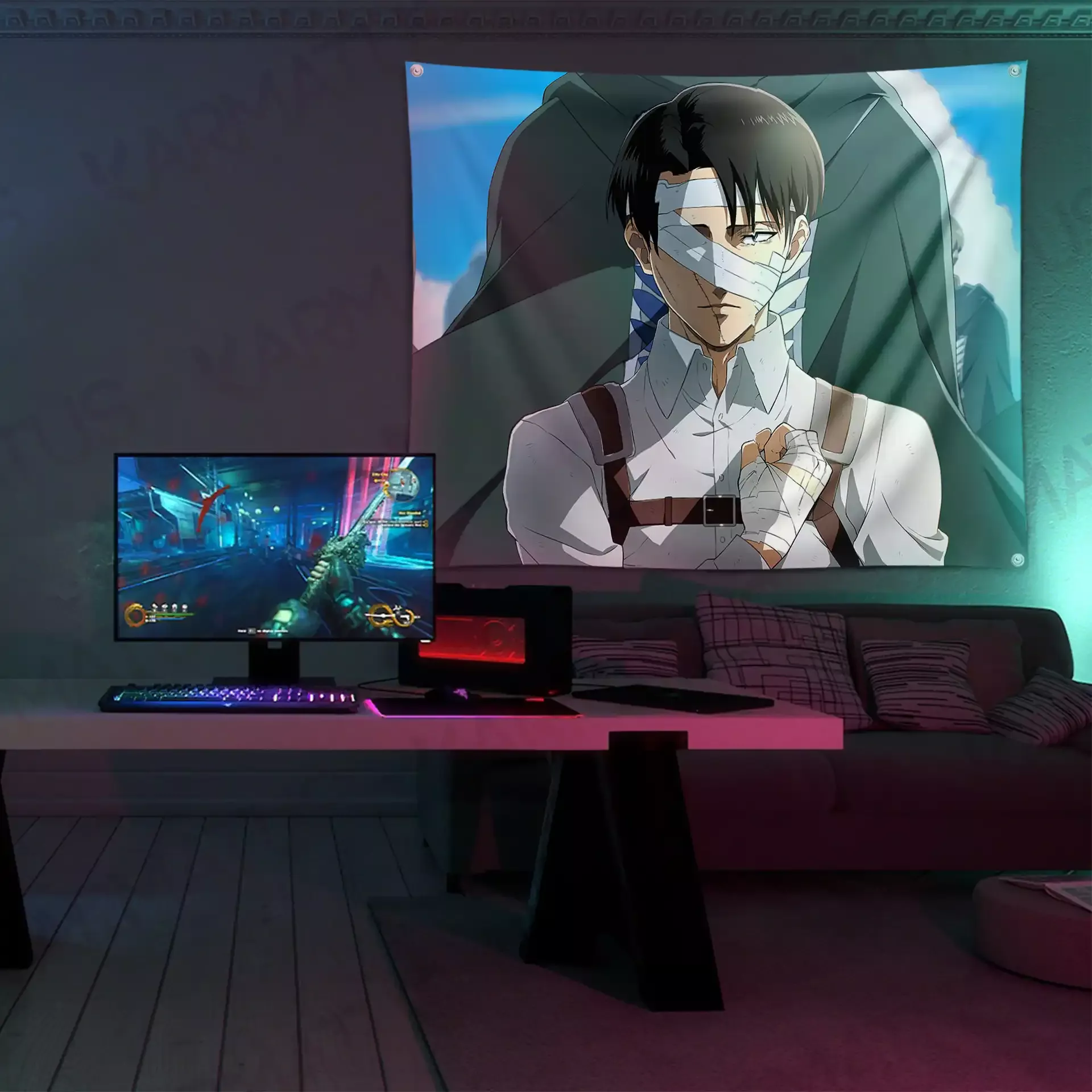 پارچه چاپ شده با کیفیت بالا طرح انیمه اتک آن تایتان