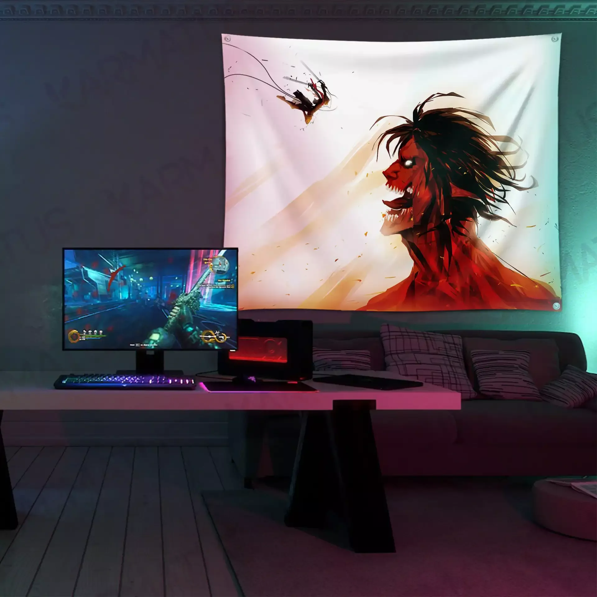 پارچه چاپ شده با کیفیت بالا طرح انیمه اتک آن تایتان