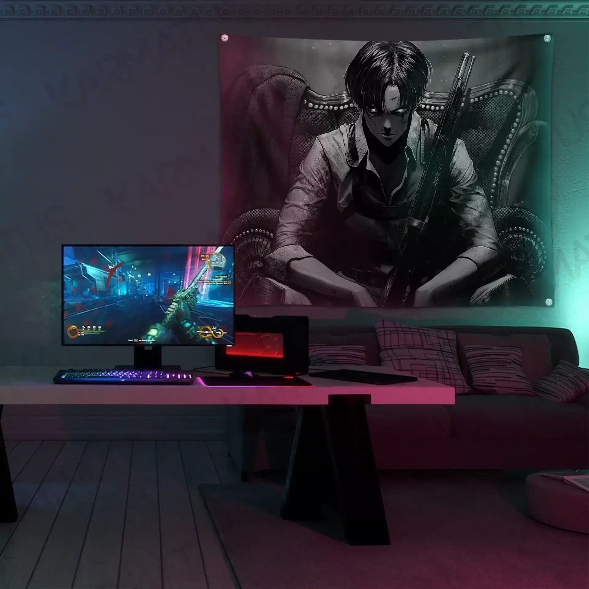 بکدراپ یا پرچم پارچه ای همانند پوستری میباشد که به جای کاغذ روی پارچه چاپ شده میباشد که شما میتوانید طرح های دلخواه خود را روی پارچه هازان در سایز های مختلف چاپ نموده و در اتاق خود نصب کنید. این کار هم دوام و هم زیبایی بیشتری نسبت به پوستر کاغذی دارد.