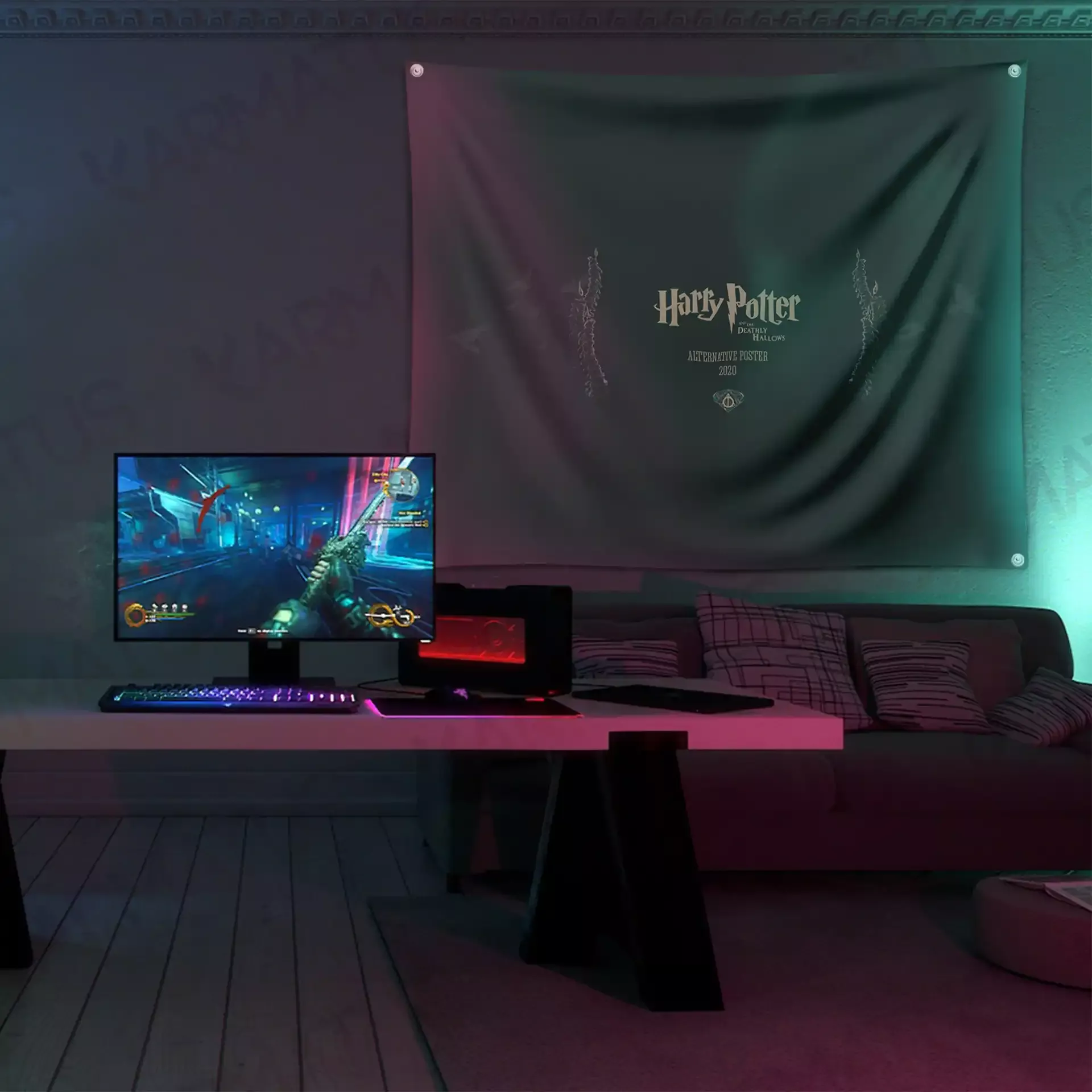 بکدراپ یا پرچم پارچه ای همانند پوستری میباشد که به جای کاغذ روی پارچه چاپ شده میباشد که شما میتوانید طرح های دلخواه خود را روی پارچه هازان در سایز های مختلف چاپ نموده و در اتاق خود نصب کنید. این کار هم دوام و هم زیبایی بیشتری نسبت به پوستر کاغذی دارد.