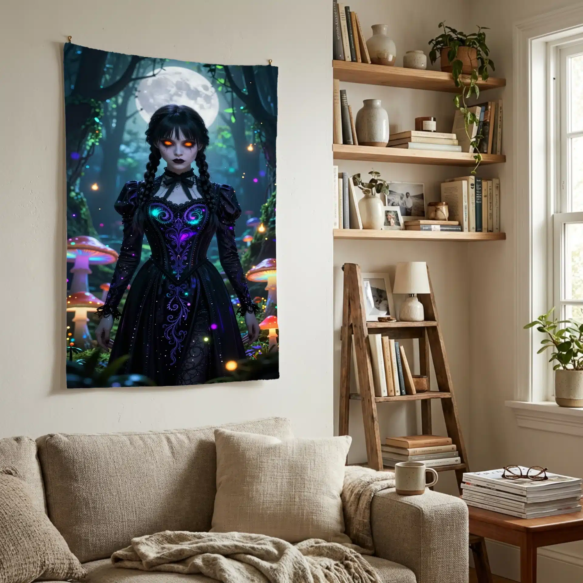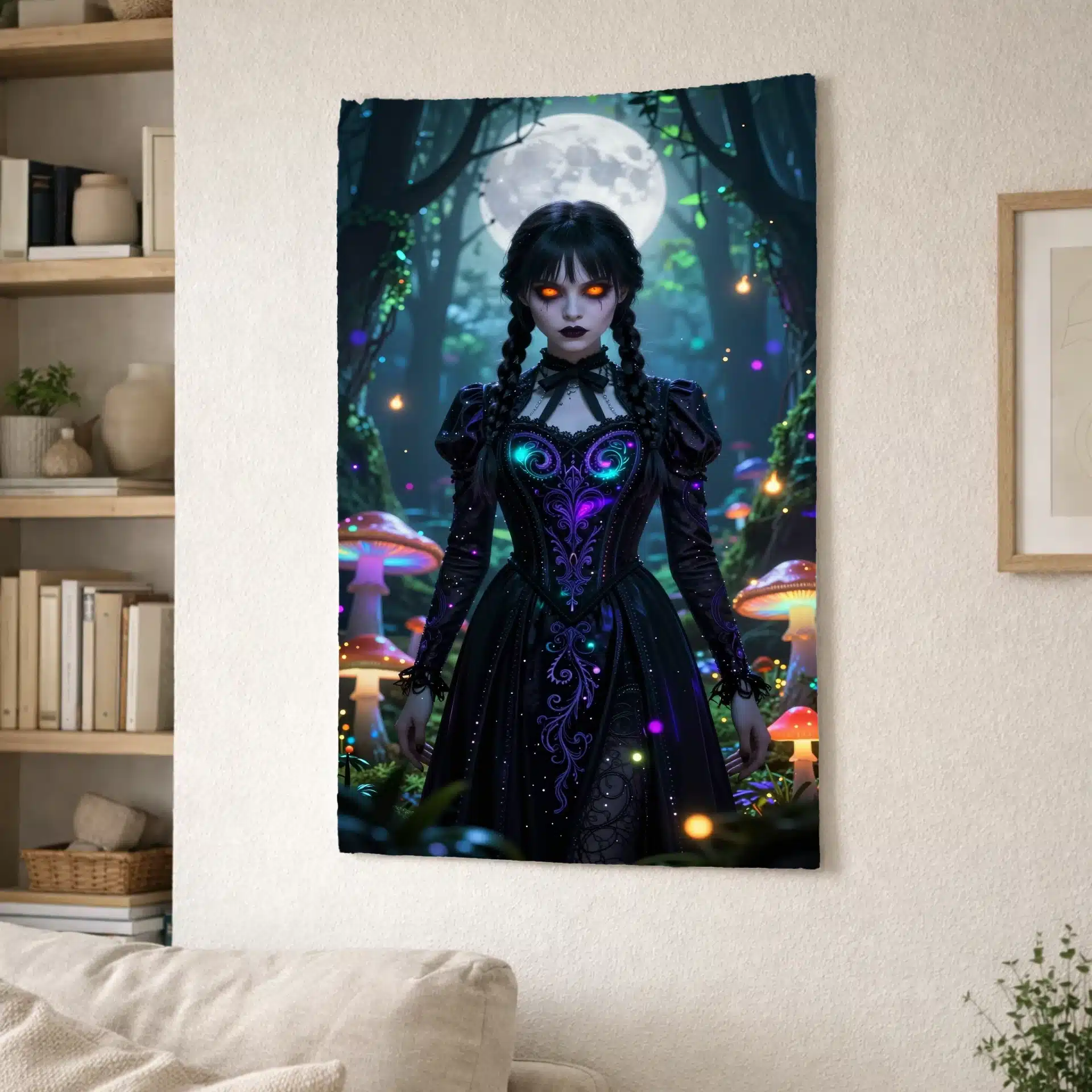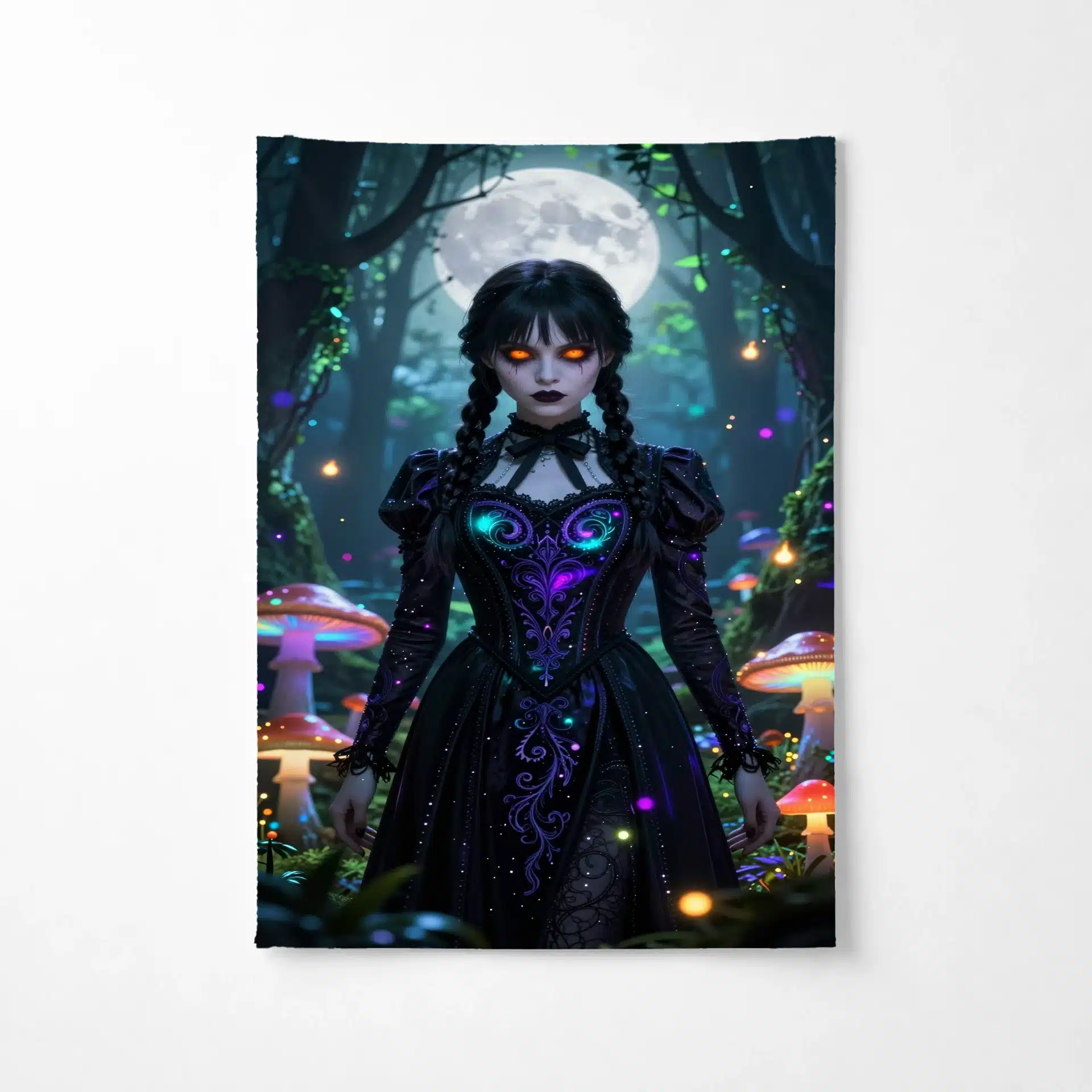 این بکدراپ خیرهکننده از ونزدی آدامز را در یک جنگل جادویی و نورانی به تصویر میکشد. با ترکیبی از فضای گوتیک و رویایی، این اثر با جزئیات فوقالعاده و نورپردازی خیرهکننده، حال و هوایی فراطبیعی و جذاب ایجاد میکند.